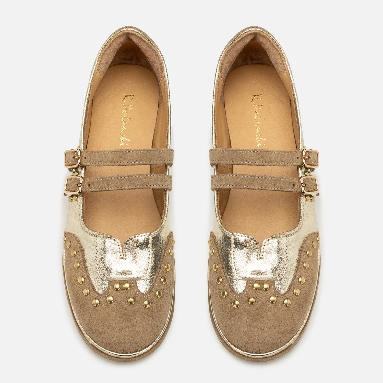 Baleriny R.Polański 2208 - Złoty Lico/Beżowy Zamsz