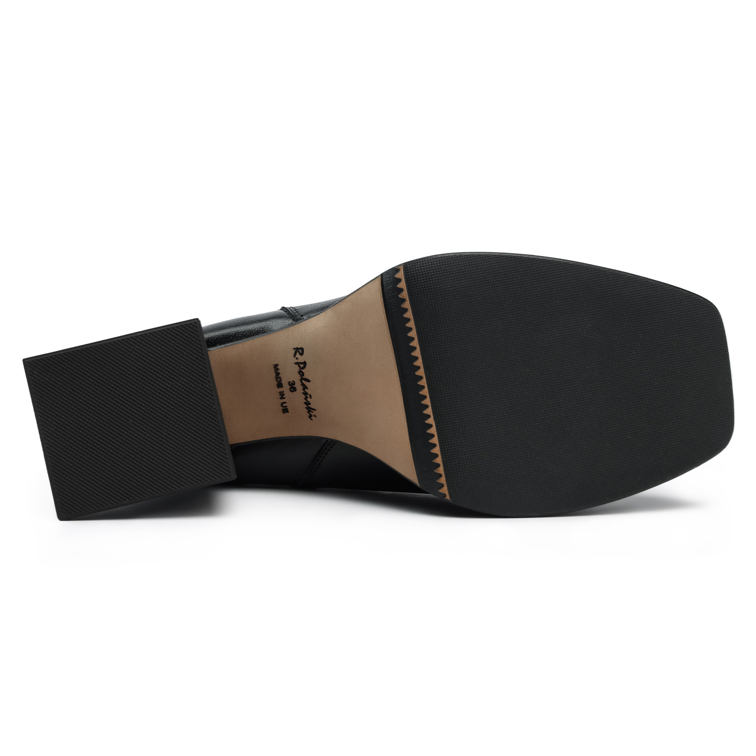 Model ten posiada kwadratowy nosek, komponujący się pod względem kształtu i wyglądu z obcasem. Cholewka jest nieco dłuższa i sięga za kostkę. Botki damskie mają także grubszą podeszwę, która współgra z wyraźnym oraz szerokim słupkiem. Obuwie idealnie sprawdzi się w przypadku odważniejszych osób, które lubią eksperymentować z modą i nie boją się nowych wyzwań.