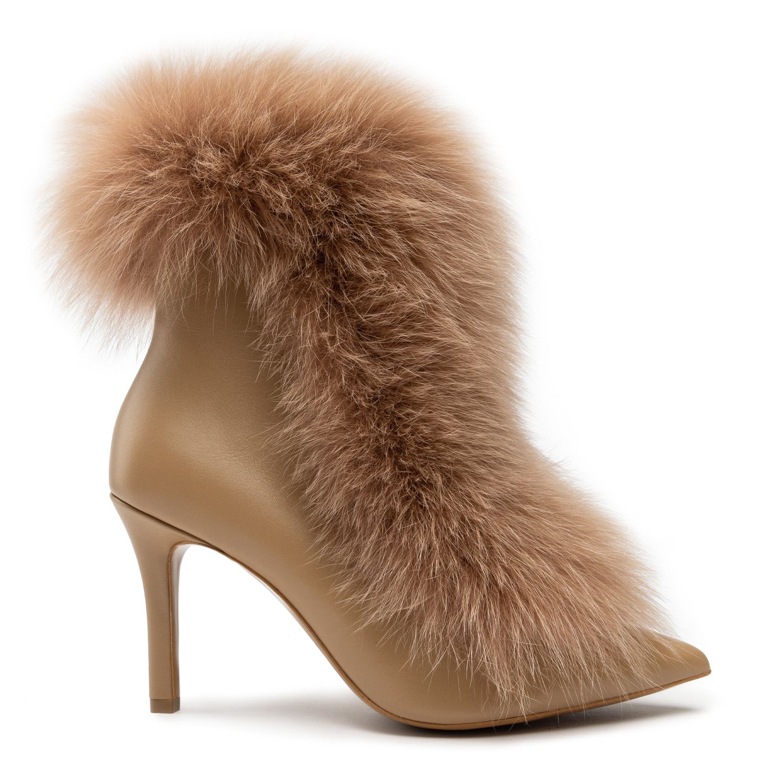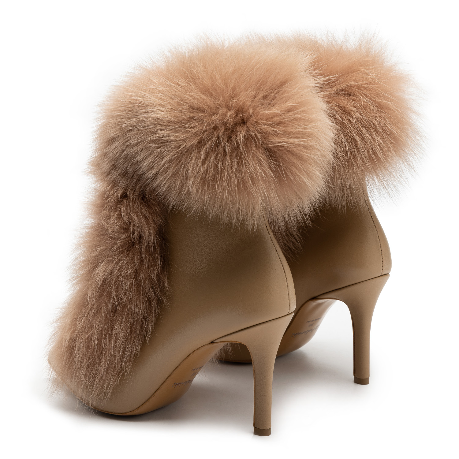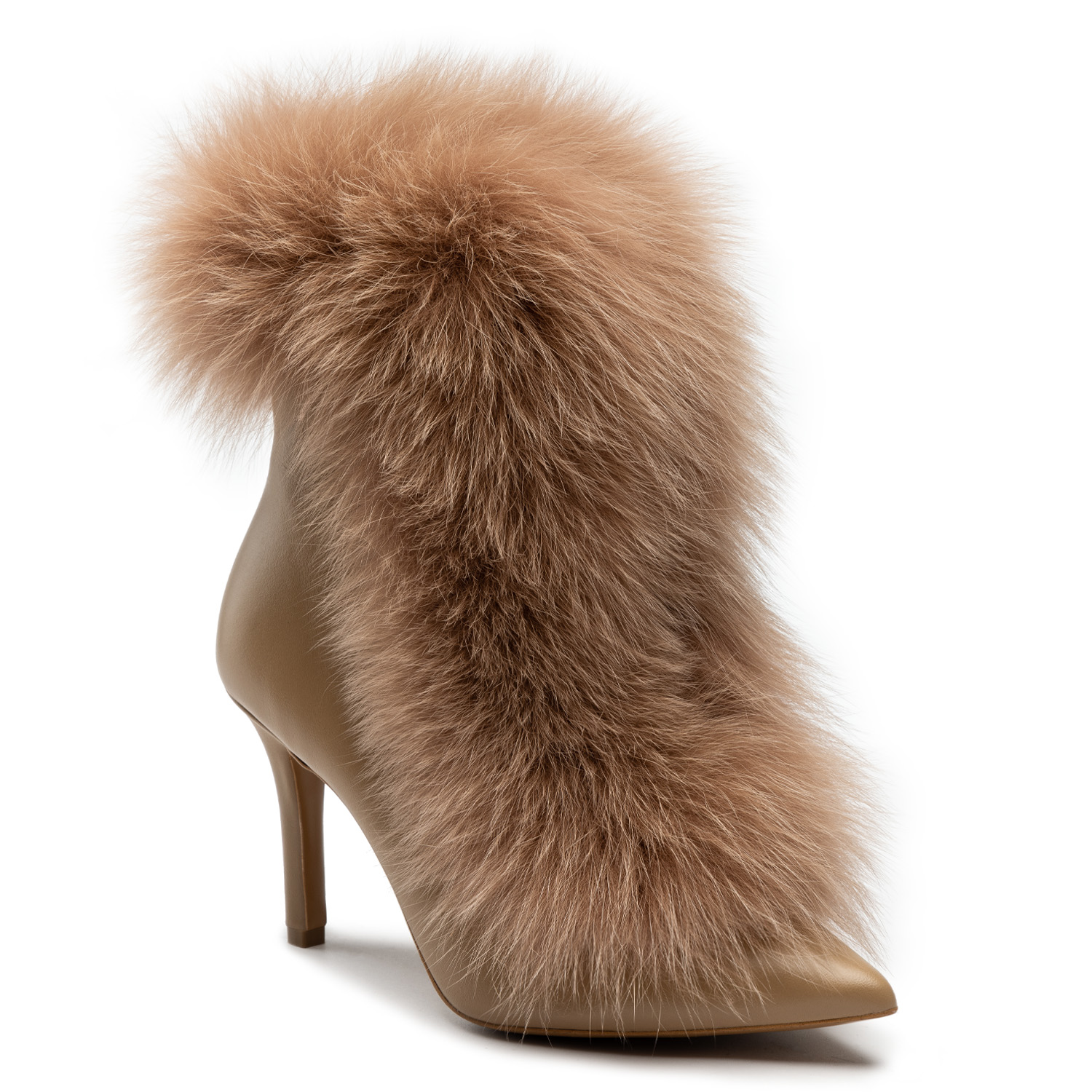 Skórzane, damskie botki to jeden z popularniejszych wyborów jesienno-zimowego obuwia. Naturalna, licowa skóra doskonale współgra z ozdobnym futerkiem oraz zapewnia odpowiednią wentylację. Szpilka o optymalnej wysokości 9 cm wpływa na komfortowe użytkowanie butów oraz sprawia, że cała sylwetka doskonale wygląda zarówno w klasycznym dżinsach, jak i eleganckiej sukience. Ozdobne futerko nie tylko pełni ozdobną funkcję modelu, ale również skutecznie chroni przed wiatrem w mroźne dni. Cholewka o wysokości 24 cm zapewnia ciepło i wygodne zakładanie oraz zdejmowanie obuwia. Botki rewelacyjnie wyglądają nie tylko w codziennych stylizacjach, ale również idealnie prezentują się w bardzo eleganckim wydaniu lub biurowych outfitach. Niespotykany model butów z pewnością przyciągnie uwagę i podkreśli każdy ubiór.