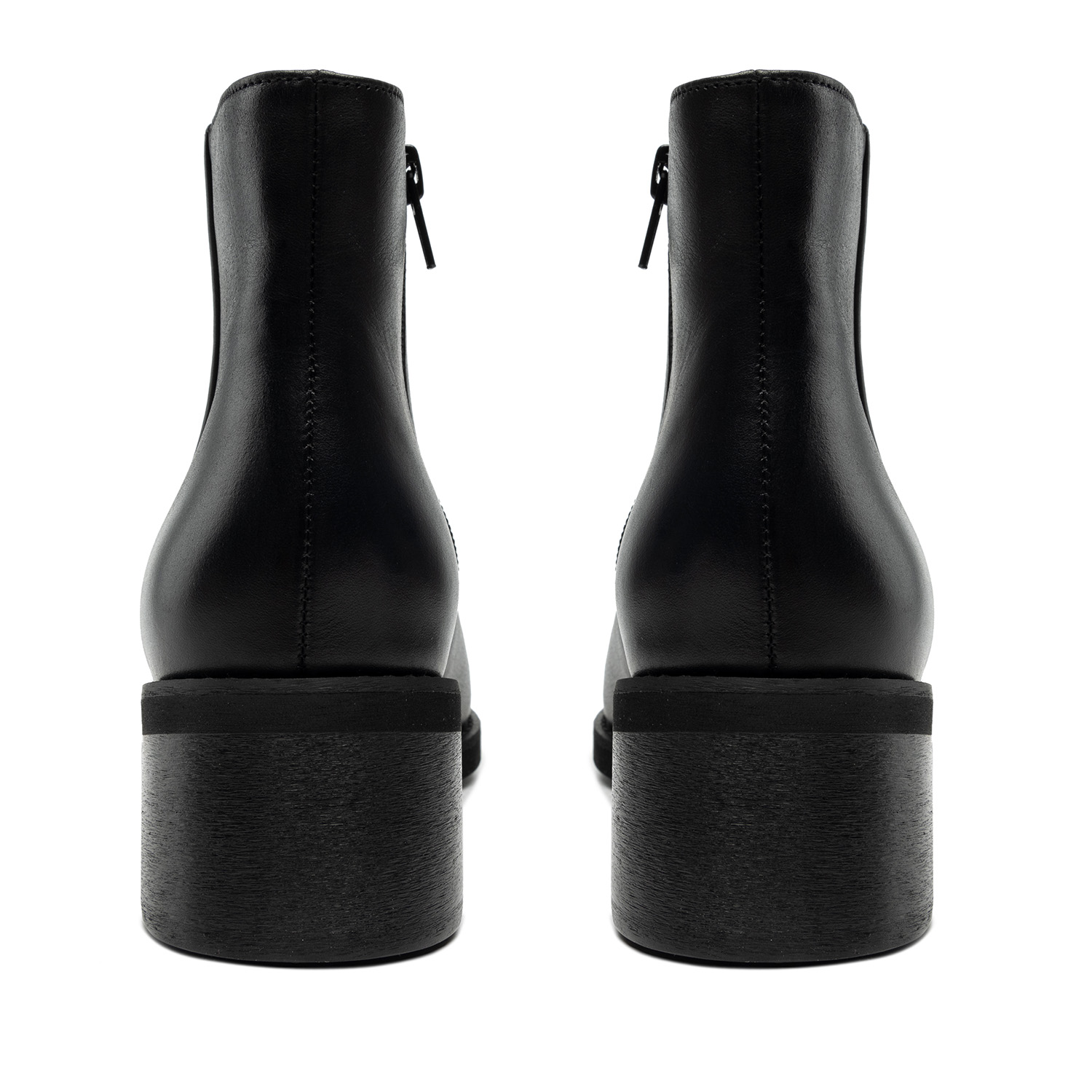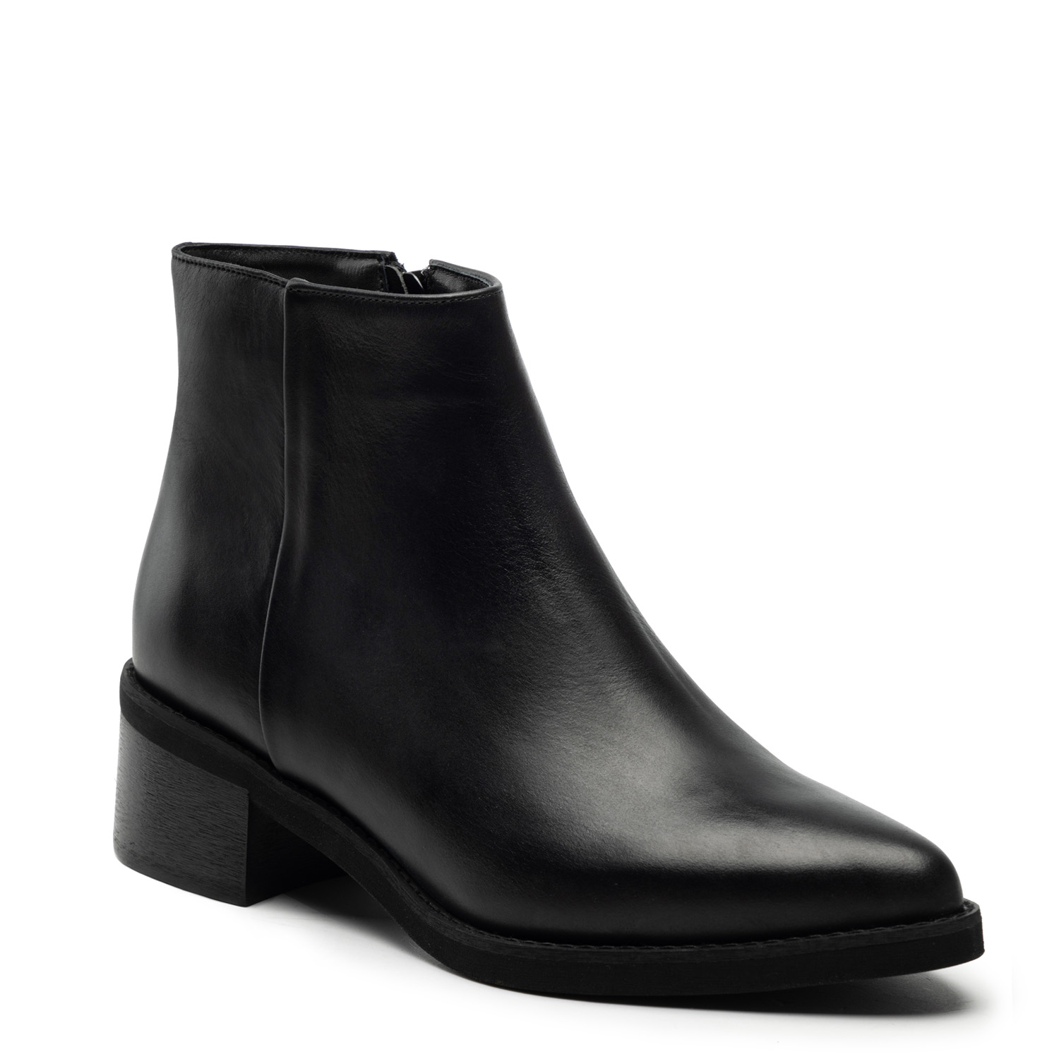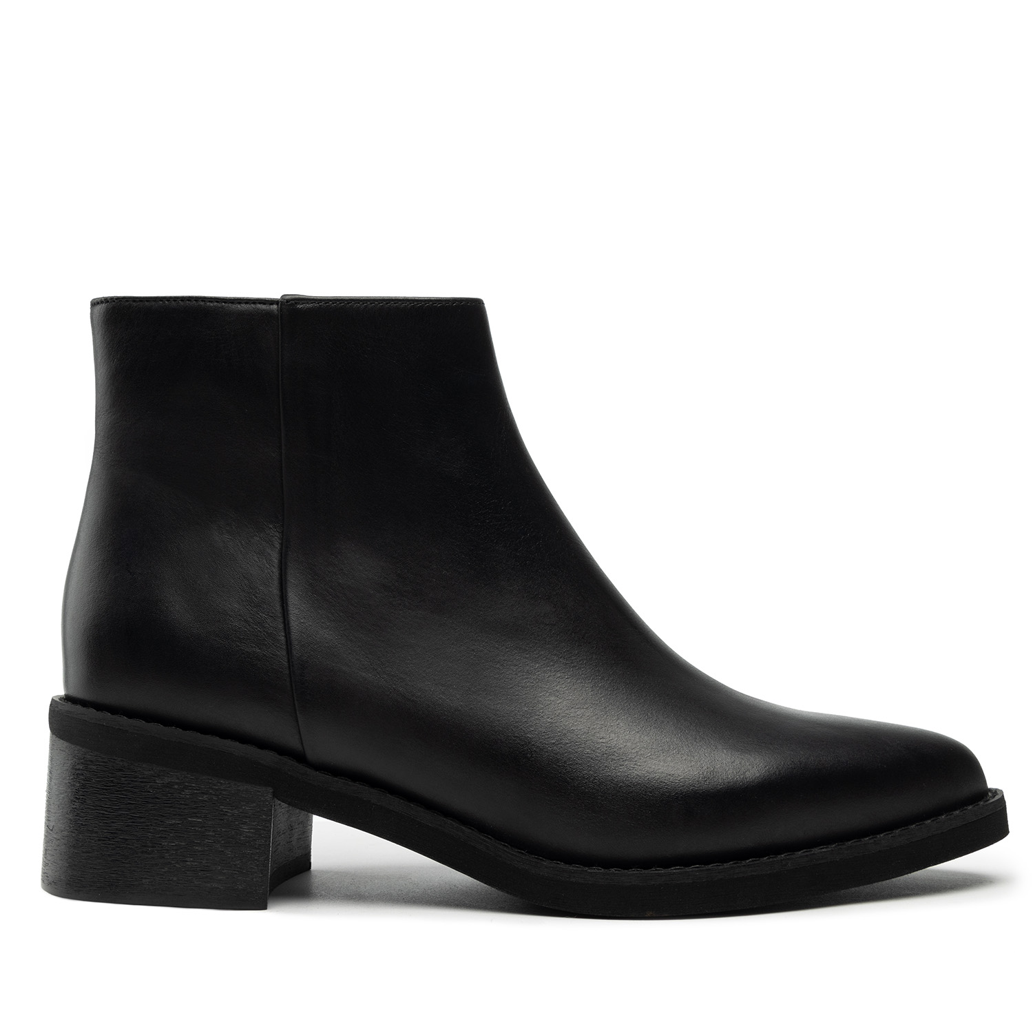 Botki na obcasie sprawdzą się jako uzupełnienie wszelkich stylizacji jesiennych i wiosennych. Szeroki obcas zapewnia stabilne podparcie stopy, jednocześnie optycznie wysmuklając nogę. Nosek w szpic to ponadczasowa klasyka, która dobrze wygląda zarówno w zestawieniu ze spódnicą czy sukienką, jak i ze spodniami od jeansów przez biurową elegancję, czyli spodnie w kant. Zapinane na suwak od wewnętrznej strony, botki damskie są zgrabnym połączeniem klasycznego stylu i wygody w użytkowaniu. Skóra licowa znajdująca się na całej cholewce buta pozwala skórze swobodnie oddychać i jest przyjemna w dotyku, a wykonywane z niej obuwie jest bardzo komfortowe w użytkowaniu. Botki posiadają skórzaną wkładkę oraz podeszwę z wysokogatunkowego tworzywa sztucznego.