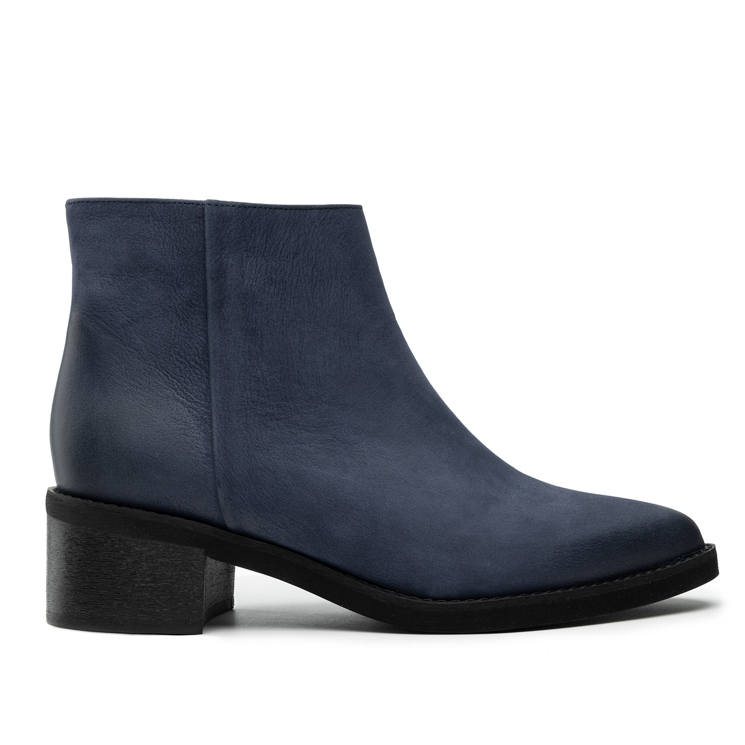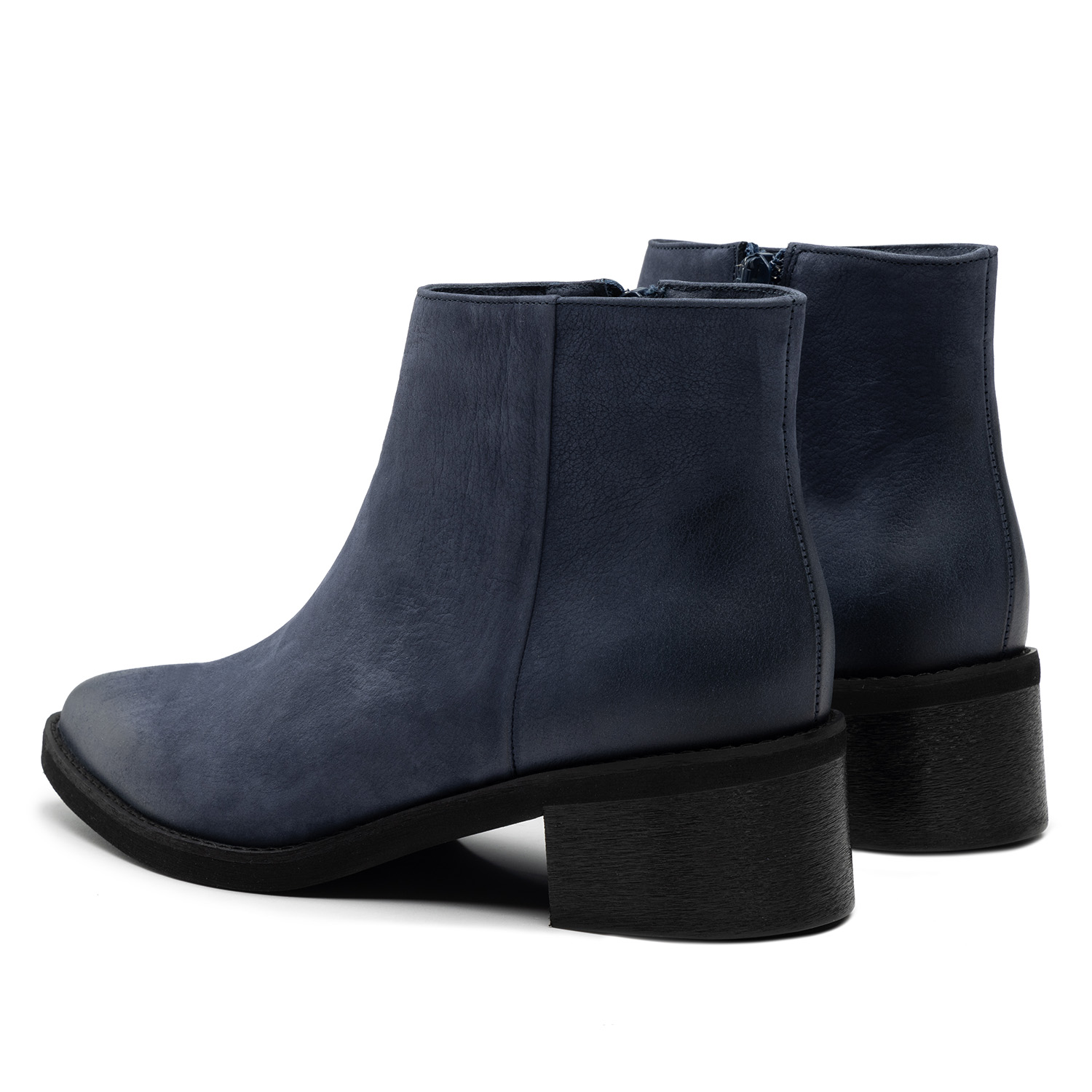 Botki na obcasie sprawdzą się jako uzupełnienie wszelkich stylizacji jesiennych i wiosennych. Szeroki obcas zapewnia stabilne podparcie stopy, jednocześnie optycznie wysmuklając nogę. Nosek w szpic to ponadczasowa klasyka, która dobrze wygląda zarówno w zestawieniu ze spódnicą czy sukienką, jak i ze spodniami od jeansów przez biurową elegancję, czyli spodnie w kant. Zapinane na suwak od wewnętrznej strony, botki damskie są zgrabnym połączeniem klasycznego stylu i wygody w użytkowaniu. Nubuk będący rodzajem miękkiej skóry o bardzo krótkim włosiu ma przyjemne, matowe wykończenie. Pozwala skórze swobodnie oddychać i jest przyjemny w dotyku oraz częściowo odporny na wilgoć, a wykonywane z niego obuwie jest bardzo komfortowe w użytkowaniu. Botki posiadają skórzaną wkładkę oraz podeszwę z wysokogatunkowego tworzywa sztucznego.