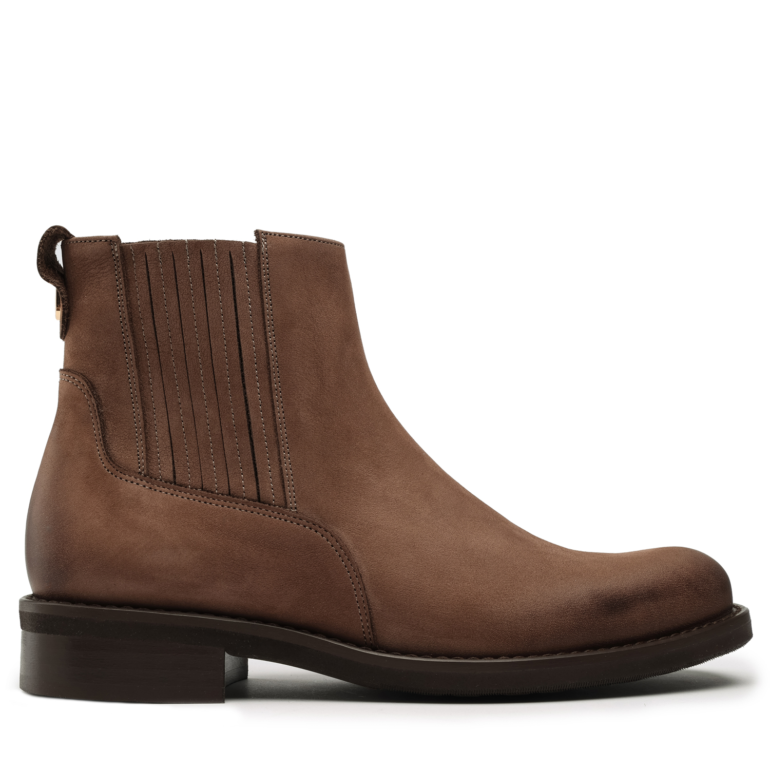 Botki za kostkę w kolorze brązowym, z matowego nubuku. Odpowiednie na jesienne i zimowe spacery, doskonale pasujące zarówno do codziennych, casualowych stylizacji, jak i na eleganckie wyjścia. Botki posiadają lekko zaokrąglony nosek i są zapinane na suwak, natomiast z boku nad kostką posiadają subtelne zdobienia w postaci pionowych pasków. Buty wykonane są z prawdziwej skóry wysokiego gatunku, dzięki czemu zachowają trwałość i ładny wygląd na dłużej. Całość sprawia, że botki prezentują się bardzo efektownie i dodadzą charakteru każdemu outfitowi. Obcas jest płaski, o wysokości jedynie 3 centymetry, natomiast wysokość całkowita butów to 16 centymetrów. Oferowane obuwie posiada gwarancję producenta zapewnioną na 2 lata od dnia zakupu produktu.