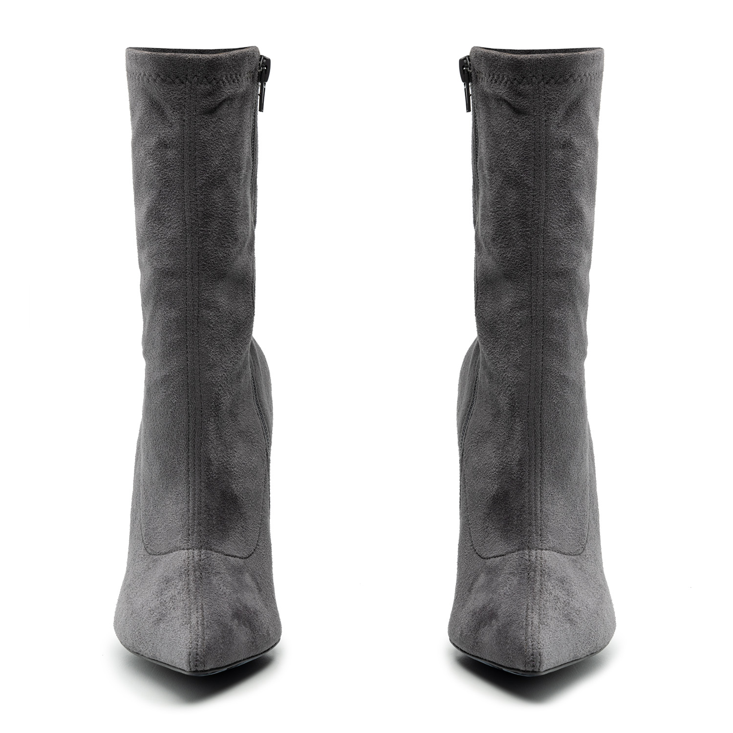 Grafitowe botki na szpilce to jeden z tych elementów garderoby, którego styl i klasa jest ponadczasowa. Wariant doskonale sprawdzi się przy większości zestawień garderoby, świetnie podkreślając zarówno elegancką sukienkę połączoną ze stylowym płaszczem, jak i dopasowane dżinsy z luźną parką. Bez wątpienia buty stanowią obowiązkową pozycję każdej kobiety w okresie jesienno-zimowym. Dyskretny suwak umieszczony po wewnętrznych stronach cholewek odpowiada za sprawne zakładanie obuwia, a oryginalne przeszycia wyróżniają botki na tle innych modeli. Szpilka z tworzywa wysokiego gatunku o wysokości 10 cm oraz nosek w szpic wydłużają i optycznie wysmuklają sylwetkę. Kilka wariantów o różnych nawierzchniach pozwoli na wybór idealnego obuwia, dostosowanego do własnych potrzeb, preferencji i upodobań.