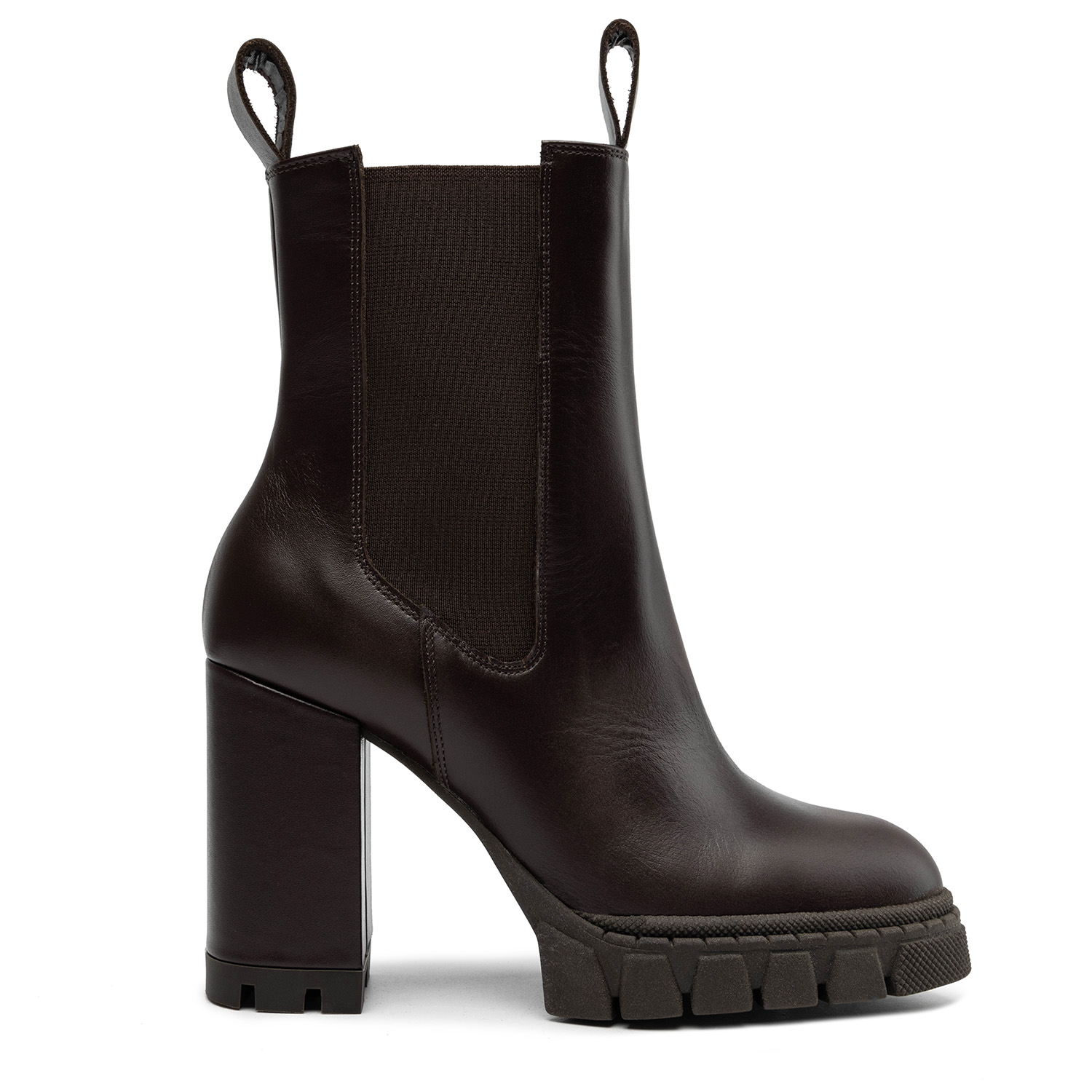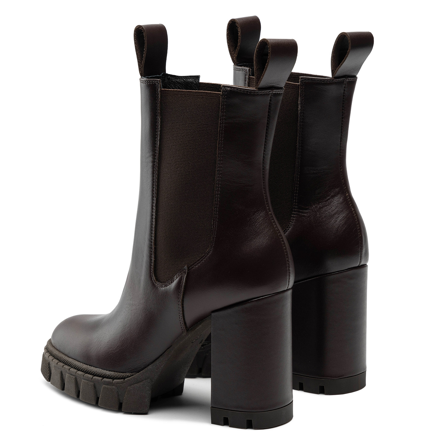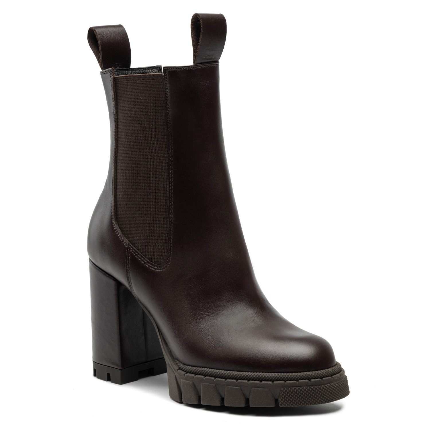 Damskie botki na słupku, wykonane z naturalnej skóry licowej. Prezentowany model posiada po obu stronach gumę, która ma usprawnić nałożenia obuwia. Podeszwa oraz ponad 10-centymetrowy obcas, zostały wytworzone z wysokogatunkowego tworzywa, natomiast słupek posiada dodatkowe, skórzane pokrycie. Botki damskie o klasycznej czarnej barwie, będą idealnym kolorem bazowym dla większości stylizacji. Przód butów lekko zaokrąglony, z poziomymi, oryginalnymi przeszyciami. Podeszwa gruba, która zapewnia efekt wizualny podobny do traperów damskich. Model ten pasuje zarówno do eleganckich strojów, jak i sportowych kompozycji ubraniowych. Z pewnością dopasujesz te botki do ulubionych outfitów!