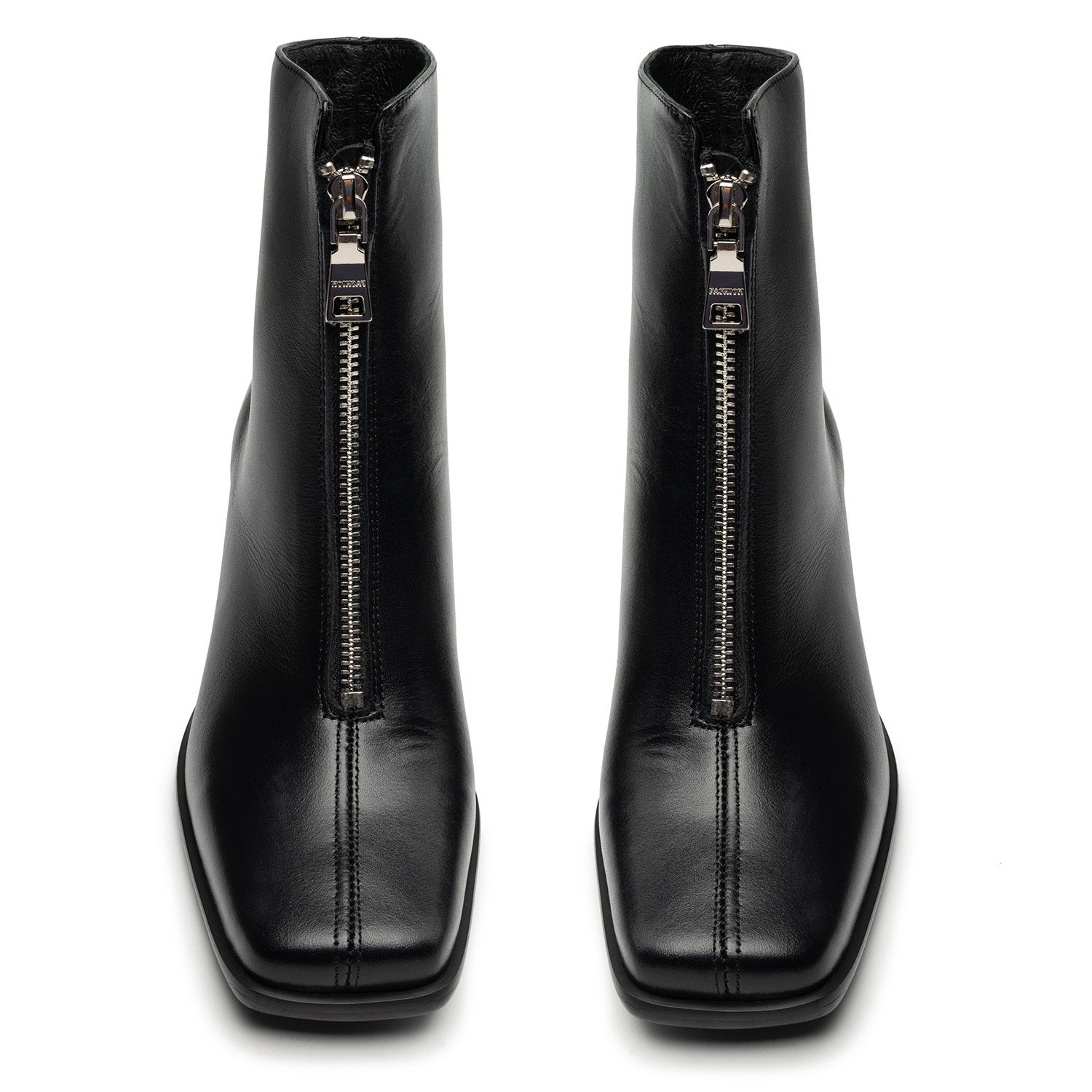 Czarny LicoInwestycja w skórzane botki, które nie tylko będą świetnie sprawdzać się w okresie jesienno-zimowym, ale również stanowić modowy element garderoby to mądre rozwiązanie. Botki o nietypowym kształcie nie tylko chronią przed niskimi temperaturami na zewnątrz, ale również doskonale uzupełniają casualowe i eleganckie stylizacje. Obuwie doskonale prezentuje się z eleganckimi płaszczami, rozkloszowanymi sukienkami lub spódnicami, a także z dopasowaną do sylwetki odzieżą. Niewielki obcas o wysokości 7 cm wpływa na wygodne chodzenie, a suwak pełniący także funkcję ozdoby ułatwia ściąganie i zakładanie butów. Cholewka o całkowitej wysokości 25 cm skutecznie chroni skórę i kostki przez zimnym wiatrem i mroźnymi temperaturami. Kilka wariantów kolorystycznych bez wątpienia ułatwi wybór idealnego modelu.