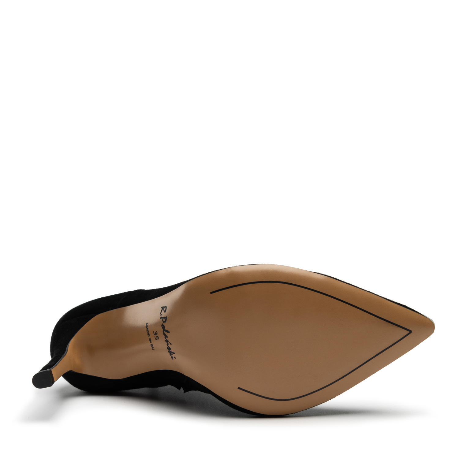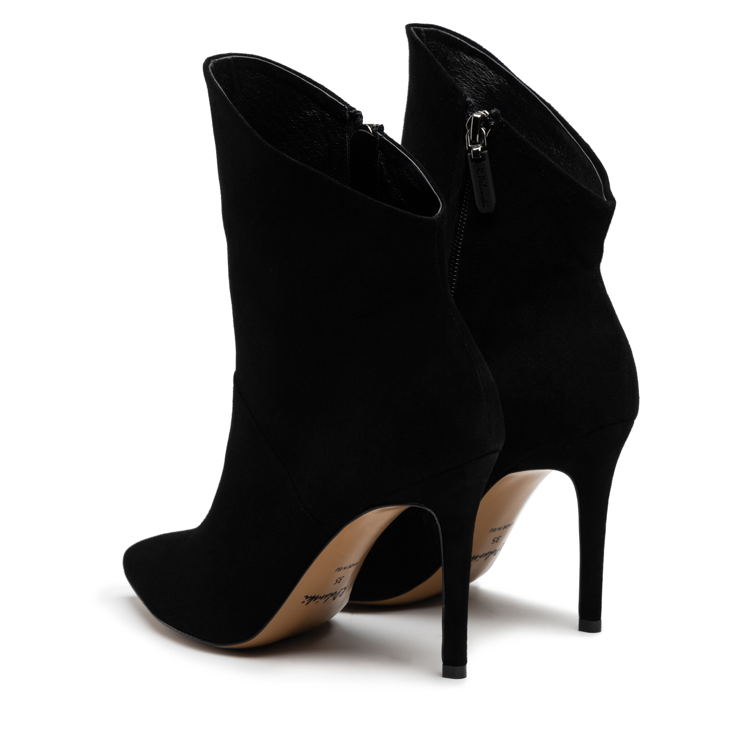 Czarny ZamszBotki w kolorze czarnym z pewnością podkreślą charakter każdej modnej kobiety. To ponadczasowe obuwie, które każda kobieta powinna mieć w swojej szafie. Gustowne botki pasują do wielu stylizacji. Zestawimy je przykładowo z płaszczem, cieplejszą kurtką, sukienką, czy też spodniami. Do tego dobierzemy torebkę i stylizacja na co dzień jest gotowa. Czarny zamsz to materiał solidny, który doskonale prezentuje się na kobiecej nodze. Botki na szpilce dodają kobiecie kilku centymetrów i pozwalają zadbać o pewność siebie. Od tej pory jesienne stylizacje są pełne klasy i wdzięku. Botki damskie mają obcas w wysokości 10 centymetrów. To świetna propozycja dla każdej pani, która dobrze czuje się na dosyć wysokich obcasach. Zamszowe botki stanowią połączenie elegancji, szyku i subtelności. Pozwalają zachować komfort w każdej sytuacji.