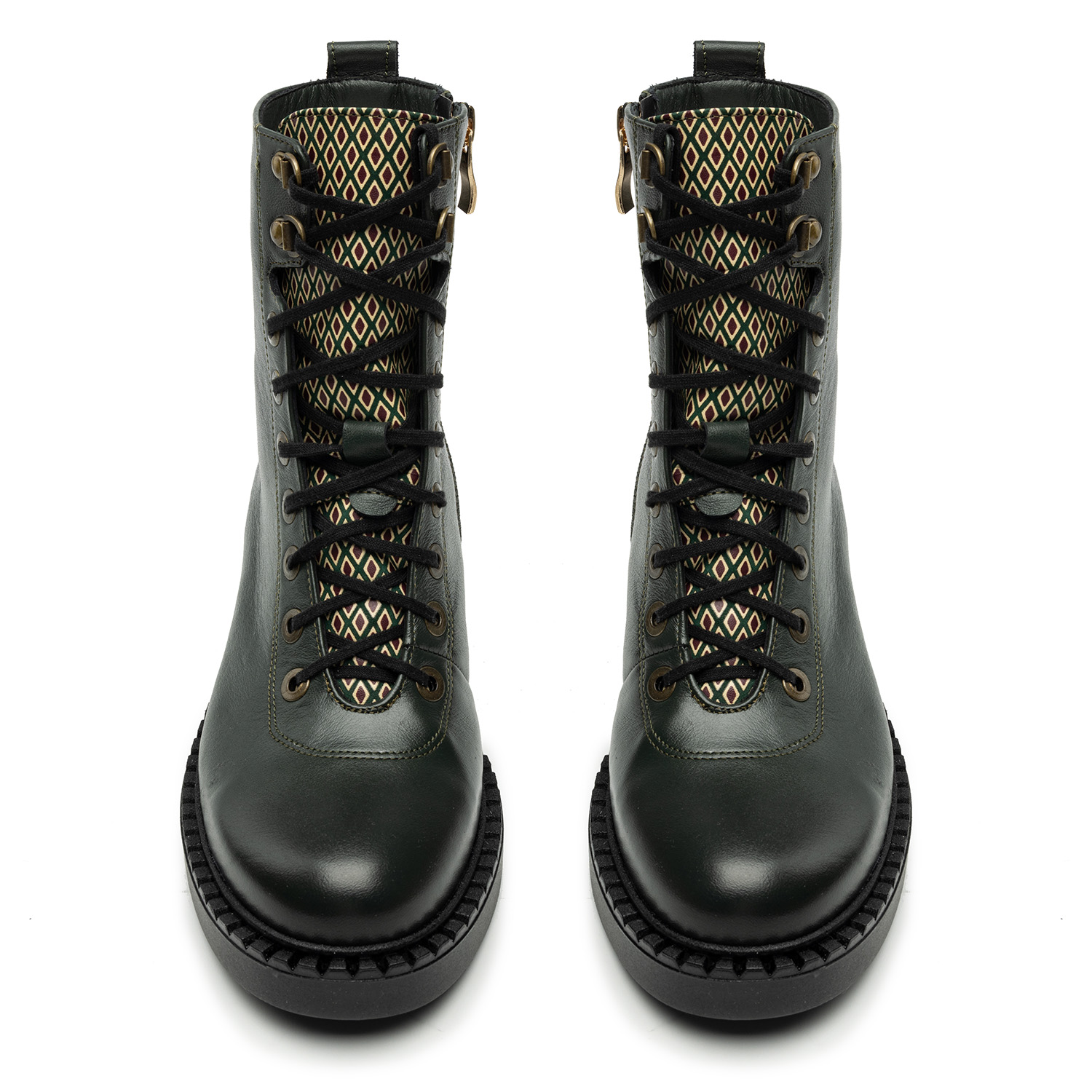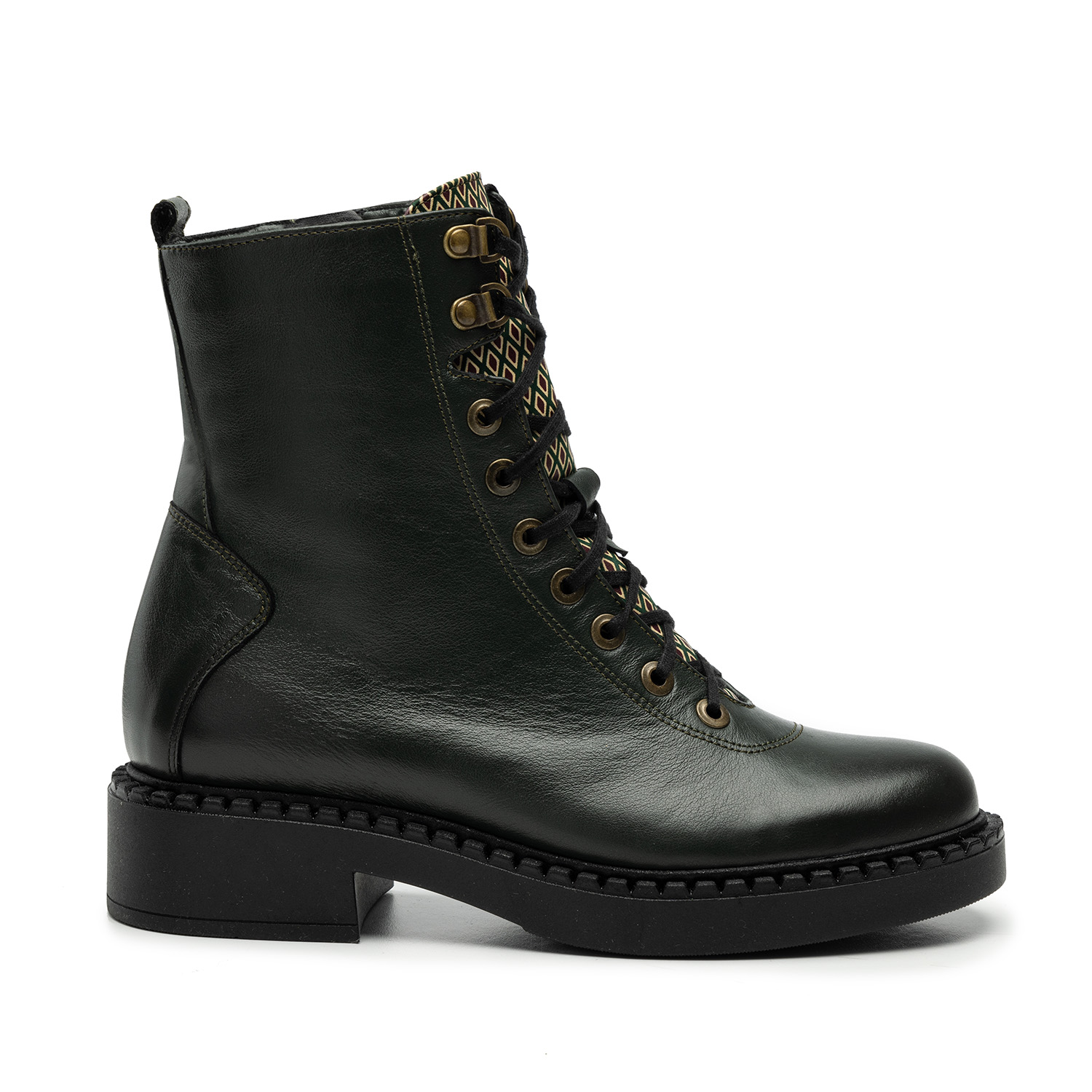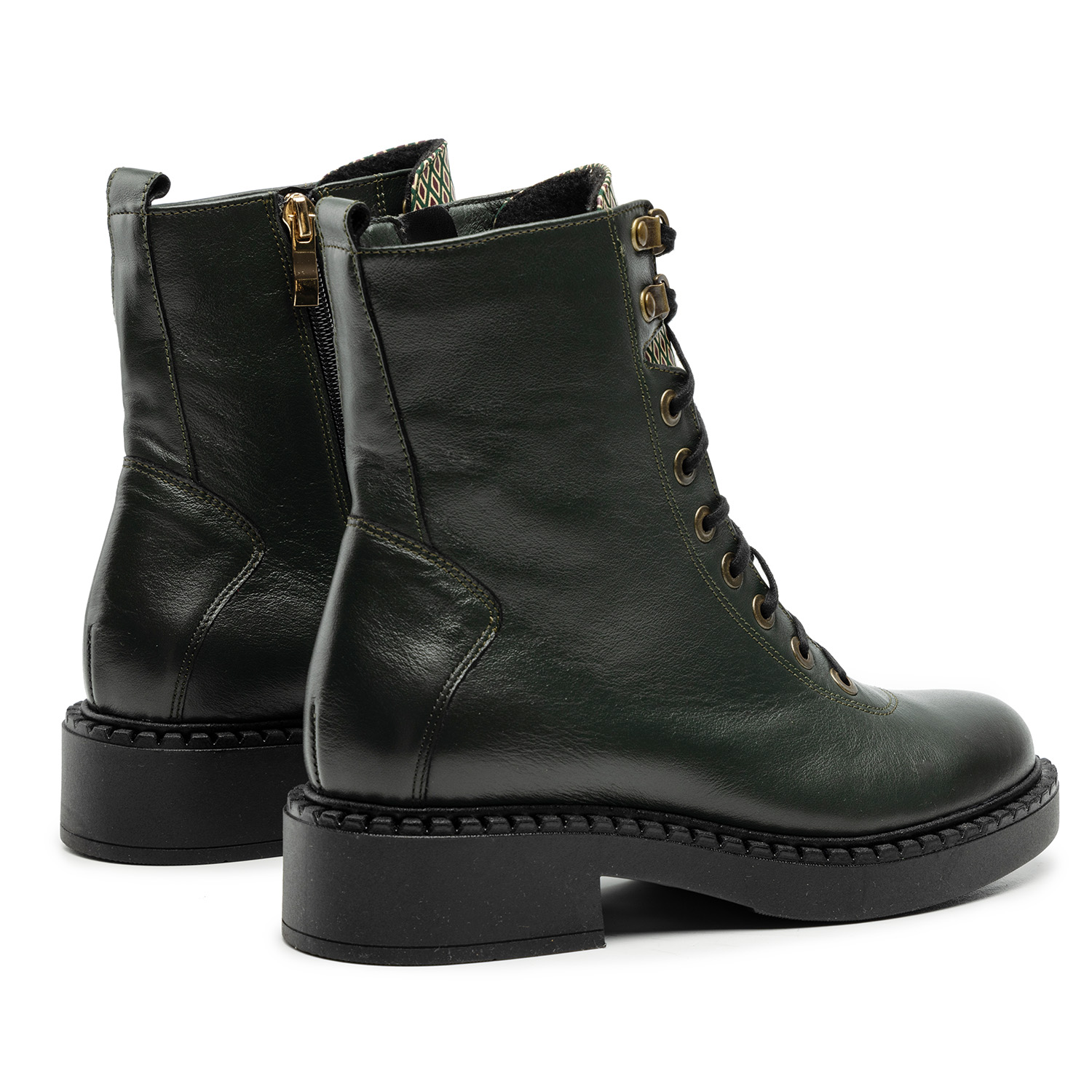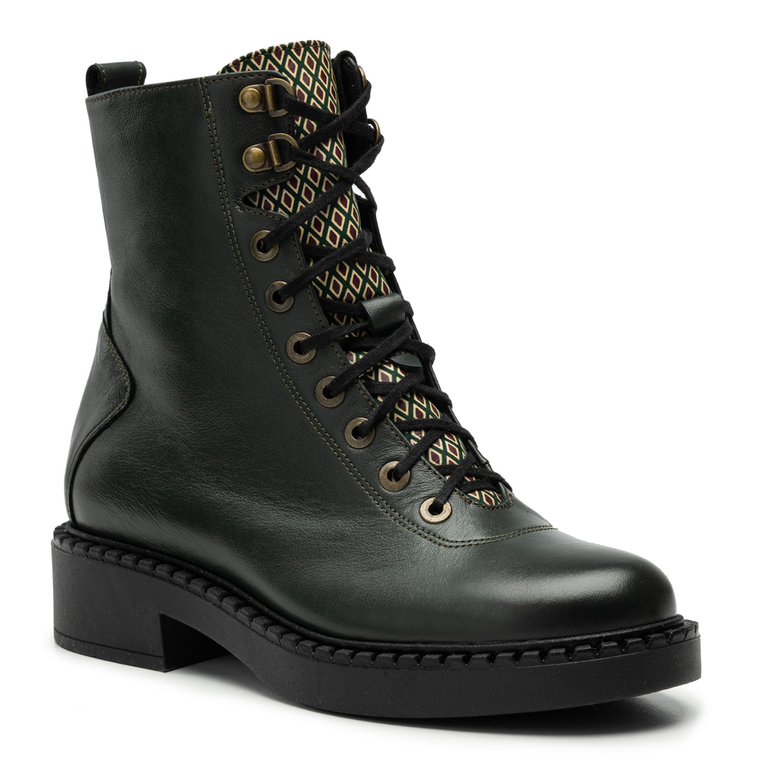 Zielone, sznurowane botki damskie skórzane na jesień R.Polański