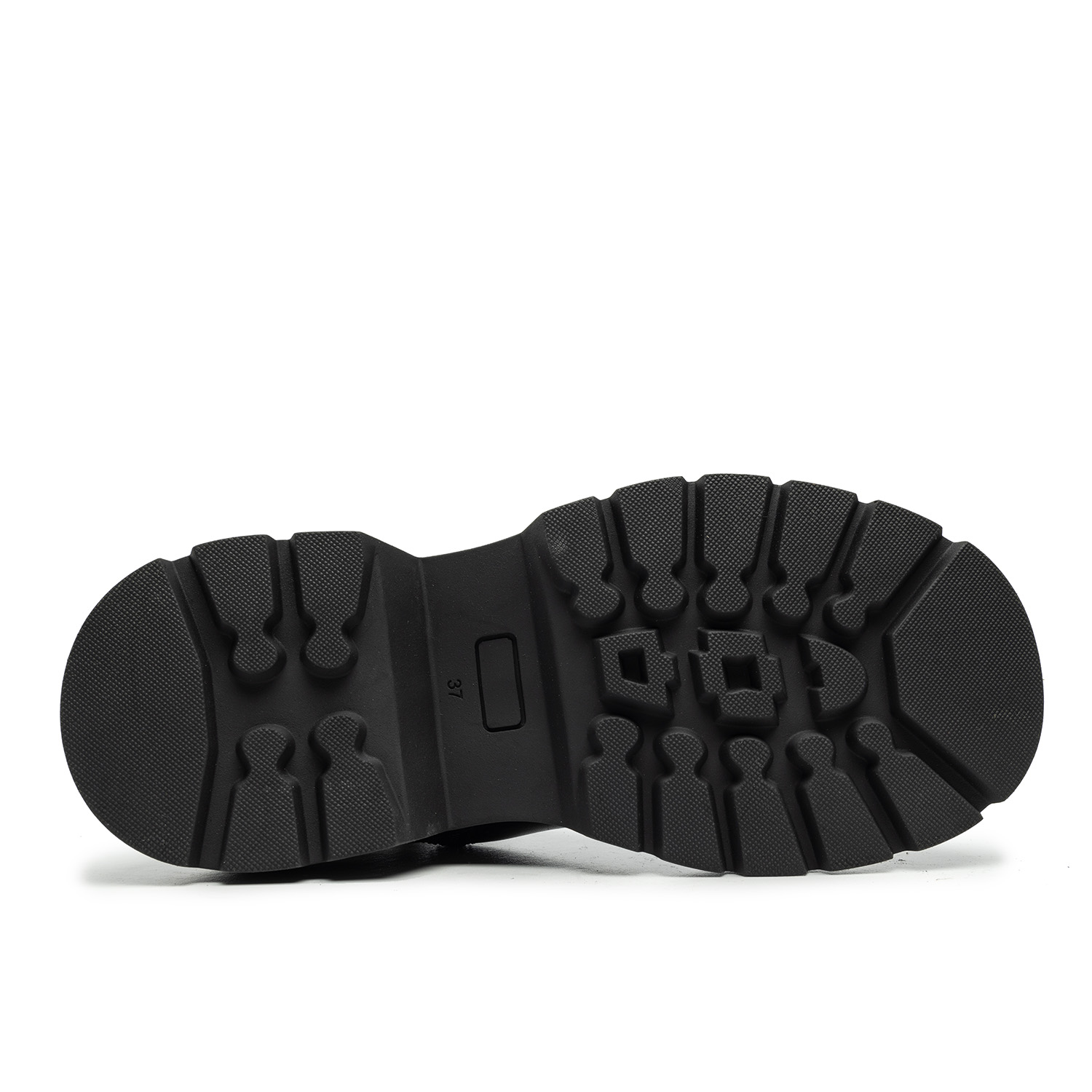 gruba podeszwa jest wodoodporna i wpisuje się w najnowsze trendy obuwnicze;