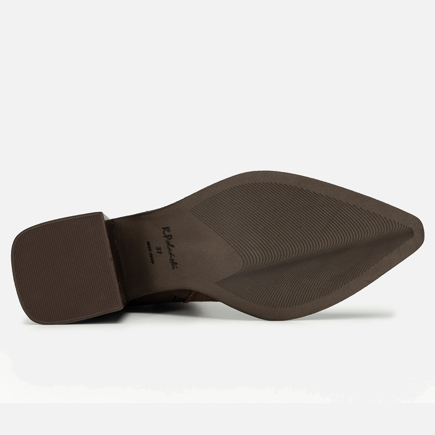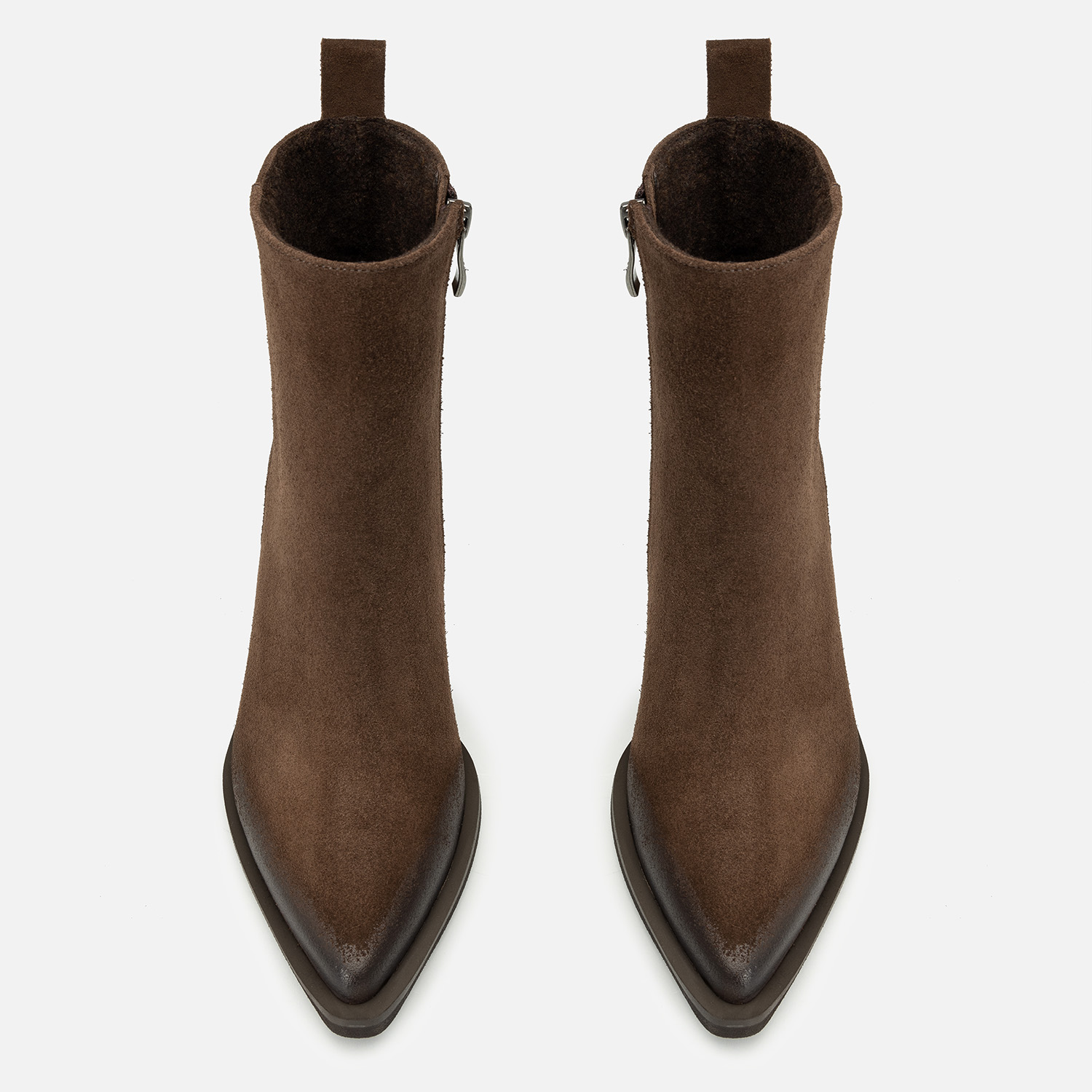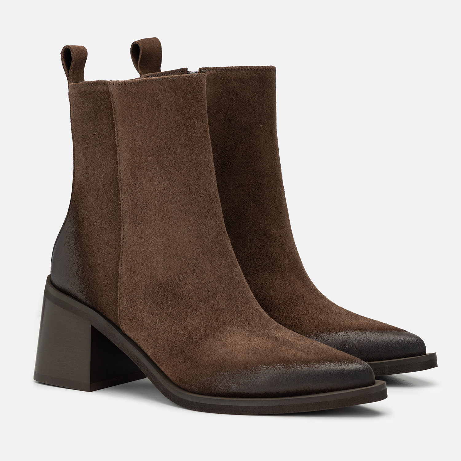 Kolor Rust to wyjątkowo modny odcień – głęboki, ciepły brąz z domieszką czerwieni, idealnie pasujący do jesienno-zimowej palety barw. Te jasnobrązowe zamszowe botki w odcieniu rdzy są niezwykle uniwersalne i doskonale komponują się zarówno z ciemnymi, jak i jasnymi elementami garderoby. Zamsz jest materiałem, który nadaje temu odcieniowi matowej szlachetności i miękkiej faktury, podkreślając luksusowy charakter obuwia. Jeśli szukasz alternatywy dla klasycznej czerni i głębokiego brązu, botki zamszowe Rust są idealnym, modowym wyborem.