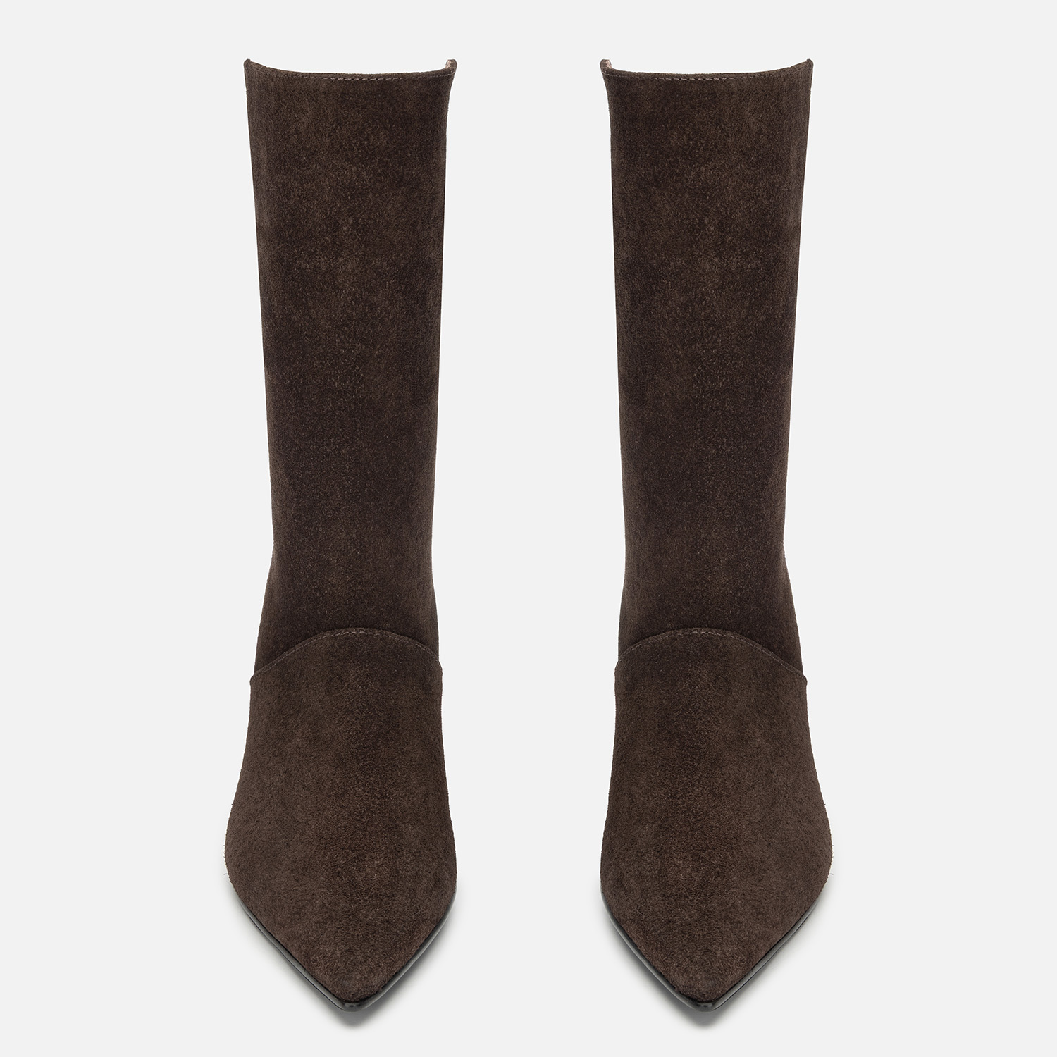 Brązowy zamsz to klasyka, która daje ogromne możliwości aranżacyjne. Te kozaki będą wyglądać obłędnie w zestawieniu z: