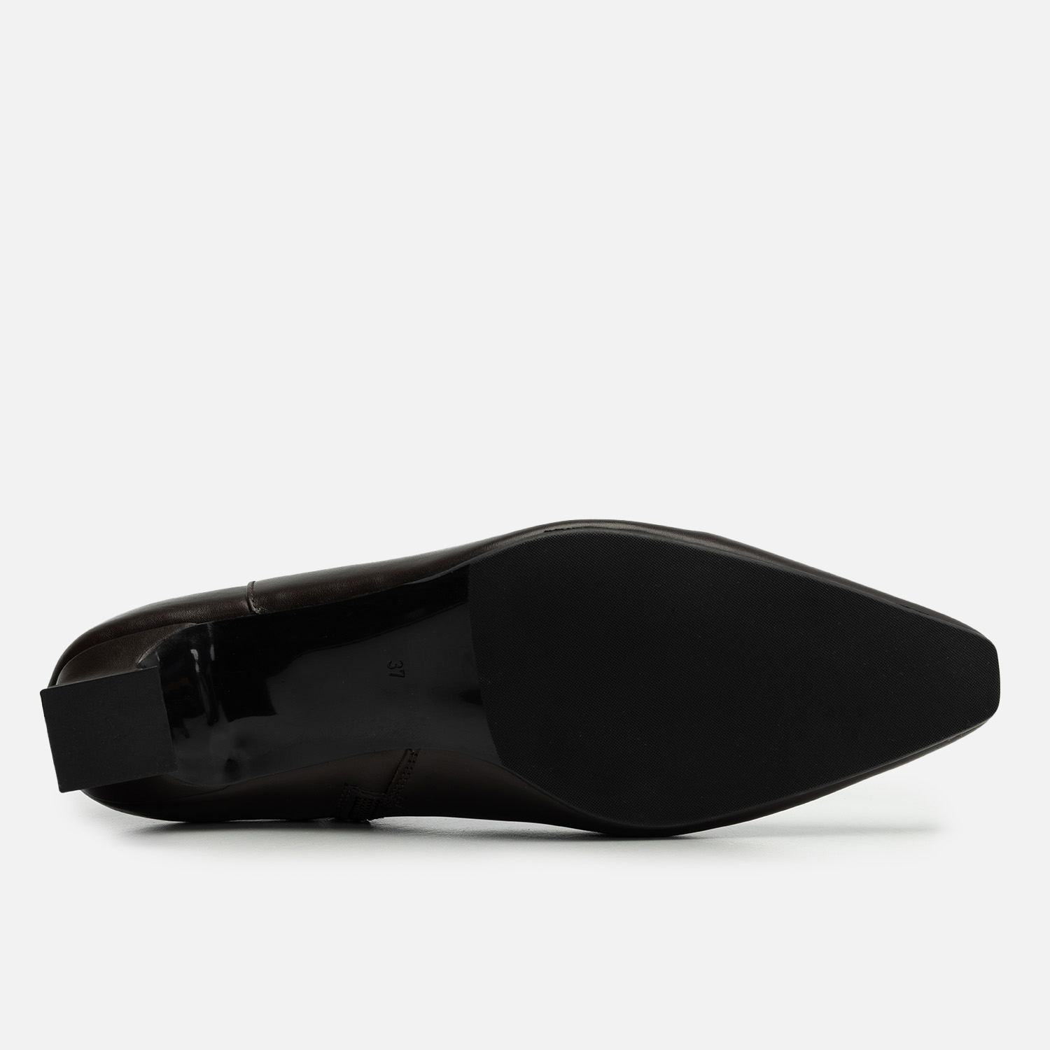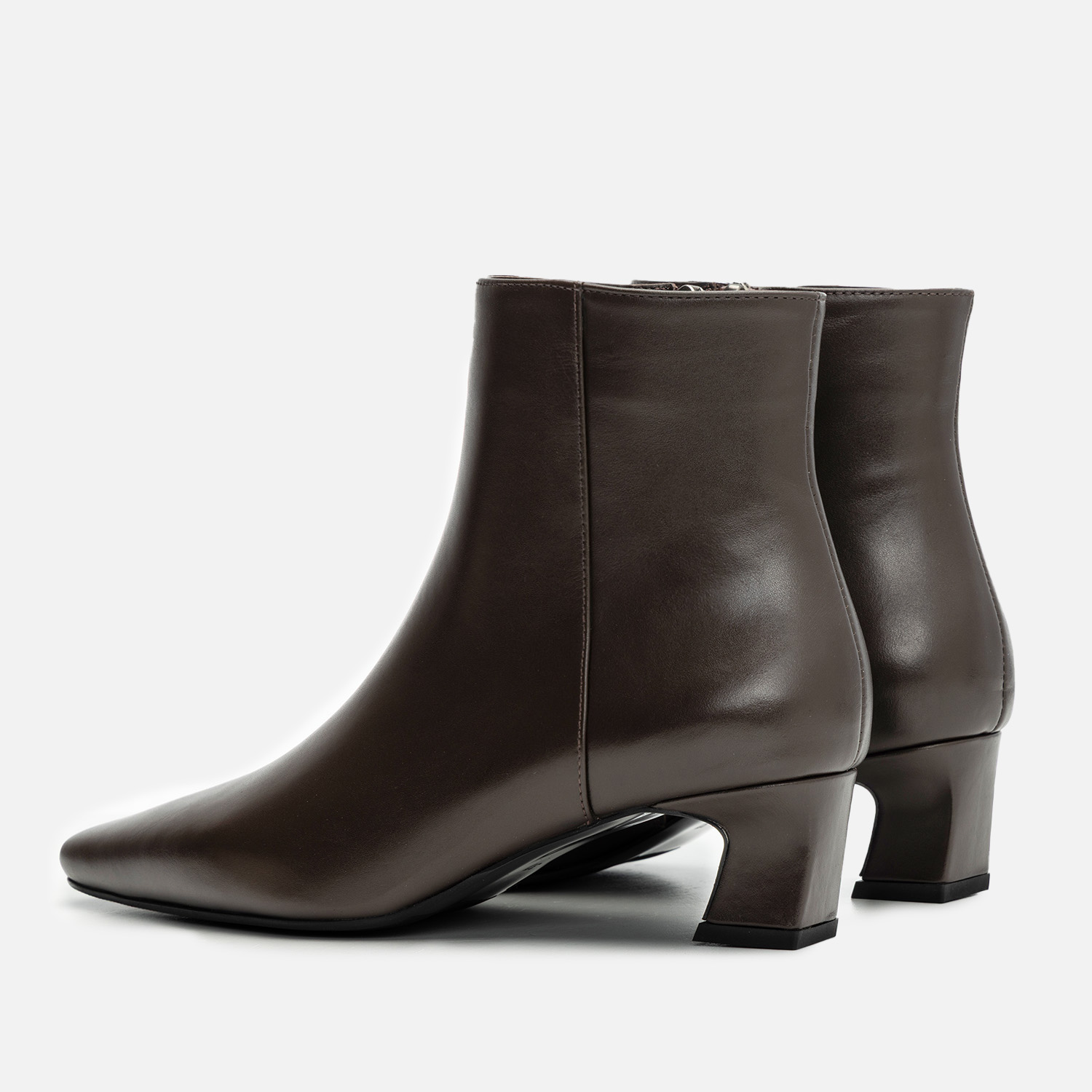Cholewka botków wykonana jest z wysokogatunkowej skóry naturalnej licowej w pięknym, głębokim odcieniu brązu. Gładka, lekko połyskująca faktura lica zapewnia botkom **wyższą formalność i jest łatwiejsza w czyszczeniu** niż zamsz. Brązowe lico dodaje stylizacjom ciepła i wyrafinowania, stanowiąc doskonałą bazę do łączenia z granatem, szarościami i beżami. Klasyczny fason z okrągłym noskiem gwarantuje **ponadczasową elegancję**.