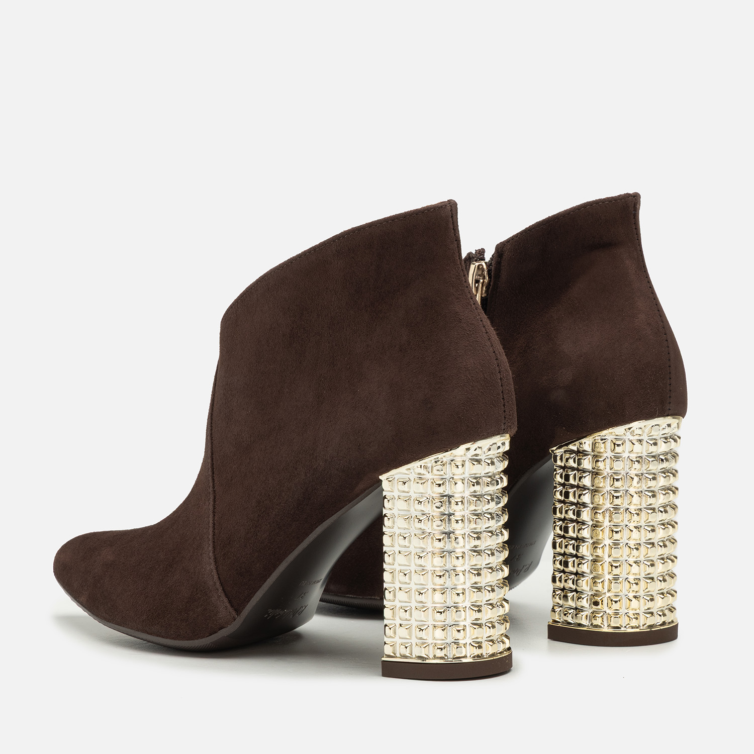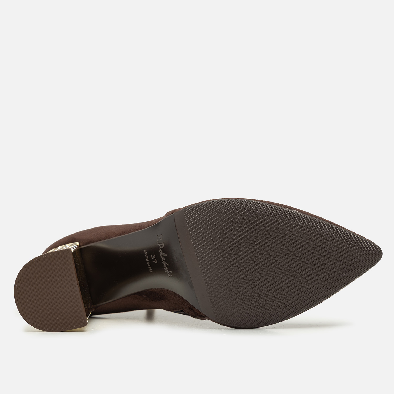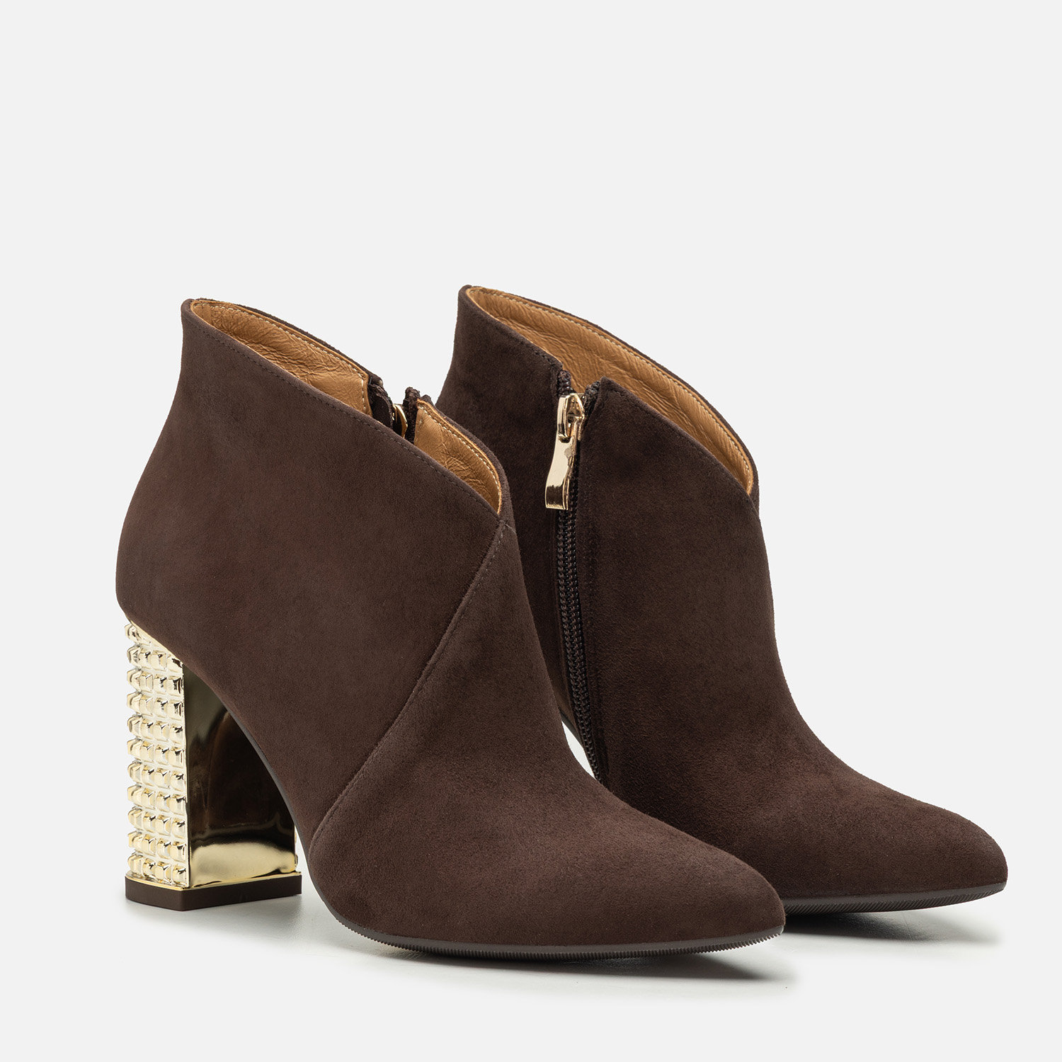 Model 975 wyróżnia się szpiczastym noskiem, który optycznie wydłuża nogi, nadając sylwetce lekkości. Prosta linia cholewki o wysokości 17,8 cm harmonijnie współgra z całością, tworząc spójny i modny look. Praktyczne zapięcie na suwak ułatwia zakładanie i zdejmowanie, co jest kluczowe w codziennym pędzie. Brązowy zamsz dodaje im unikatowego charakteru, pasując do wielu stylizacji – od casualowych, po bardziej formalne.