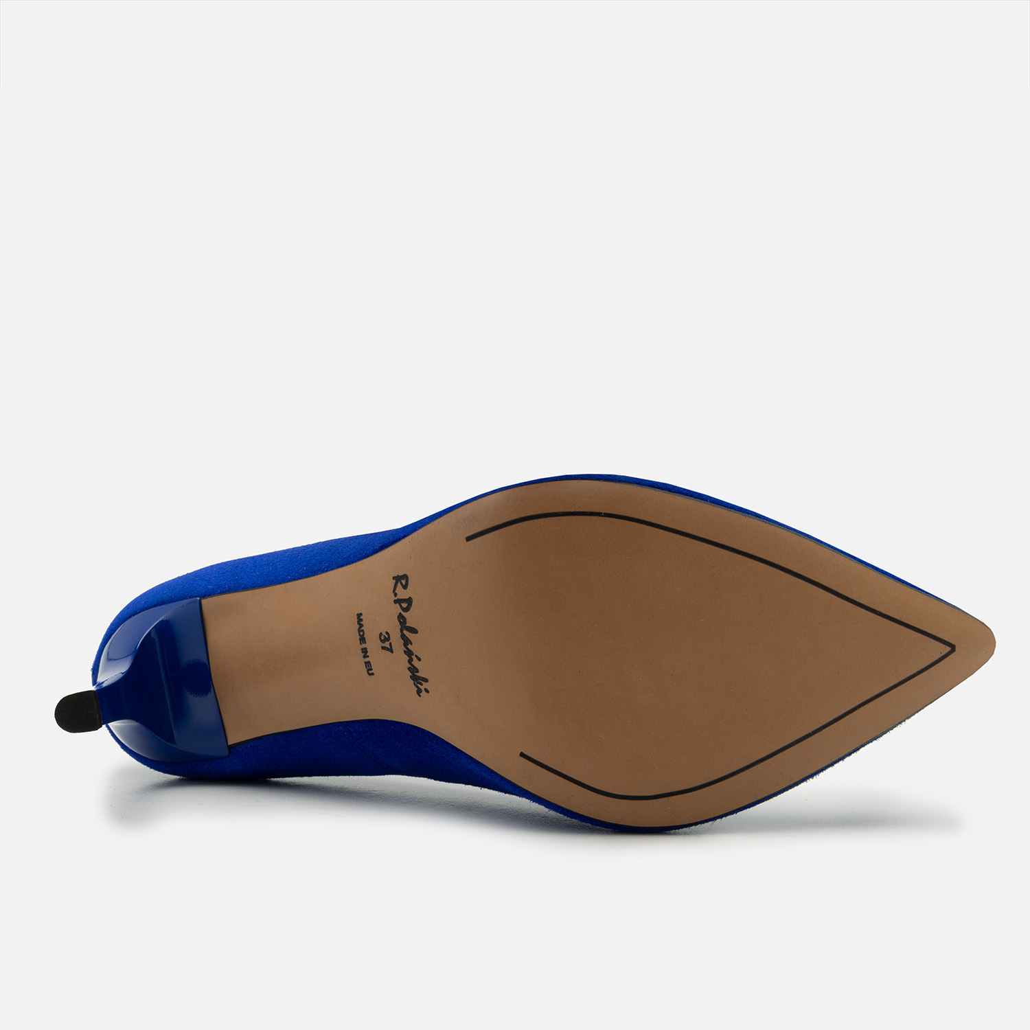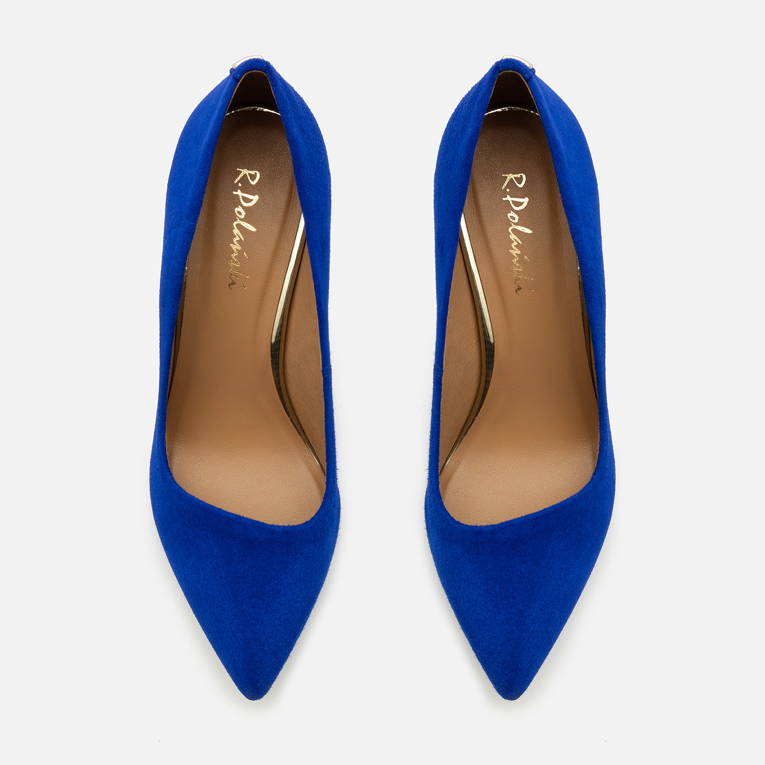 Szpilki w kolorze chabrowym? Dlaczego nie! Buty R.Polański 760/A nie pozwolą nikomu przejść obok nich obojętnie. Naturalna skóra zamszowa została wybarwiona na piękny odcień, który wspaniale uzupełni stylizacje imprezowe, jak i bardziej klasyczne. Klasyczny fason ze szpiczastym noskiem i subtelną szpilką sprawia, że buty te podkreślają smukłość nóg i wizualnie je wydłużają.