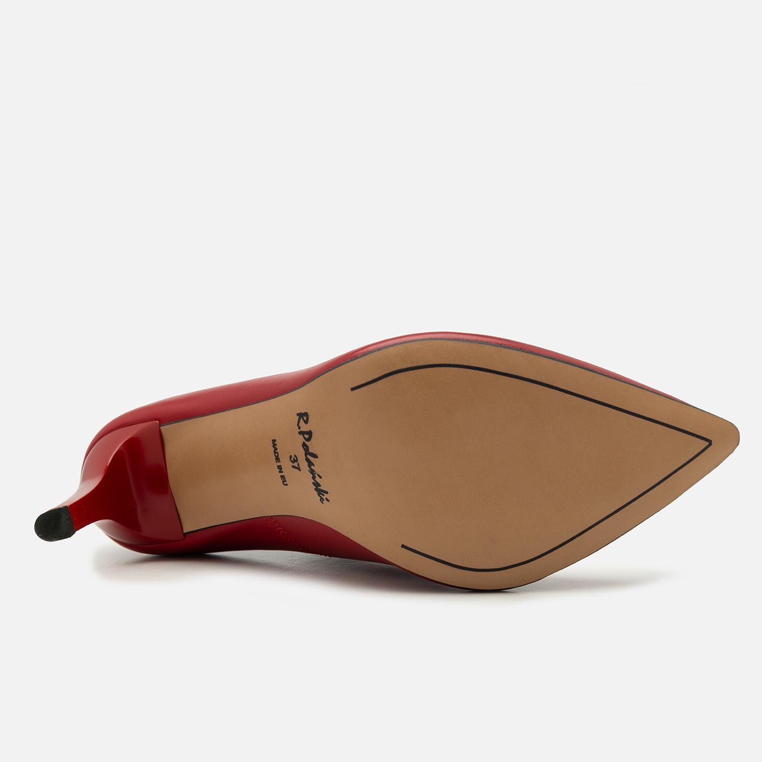 Szpilki w kolorze czerwieni? Dlaczego nie! Buty R.Polański 760/A nie pozwolą nikomu przejść obok nich obojętnie. Naturalna skóra licowa została wybarwiona na piękny odcień, który wspaniale uzupełni stylizacje imprezowe, jak i bardziej klasyczne. Klasyczny fason ze szpiczastym noskiem i subtelną szpilką sprawia, że buty te podkreślają smukłość nóg i wizualnie je wydłużają.