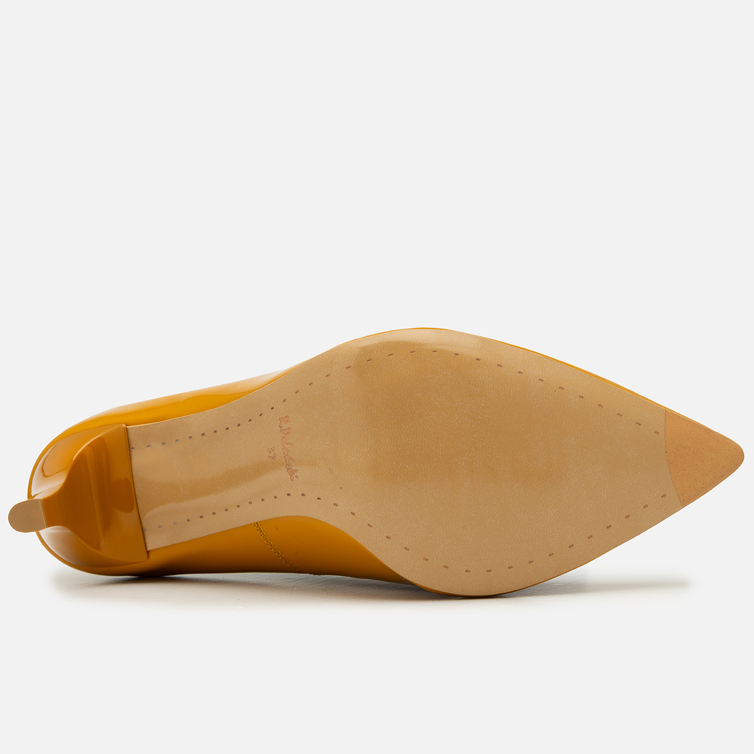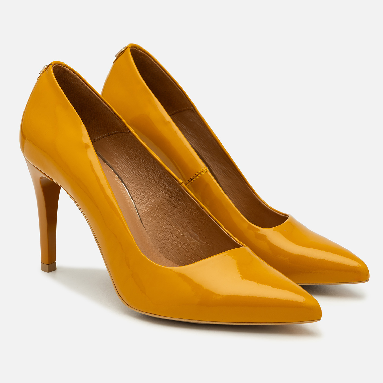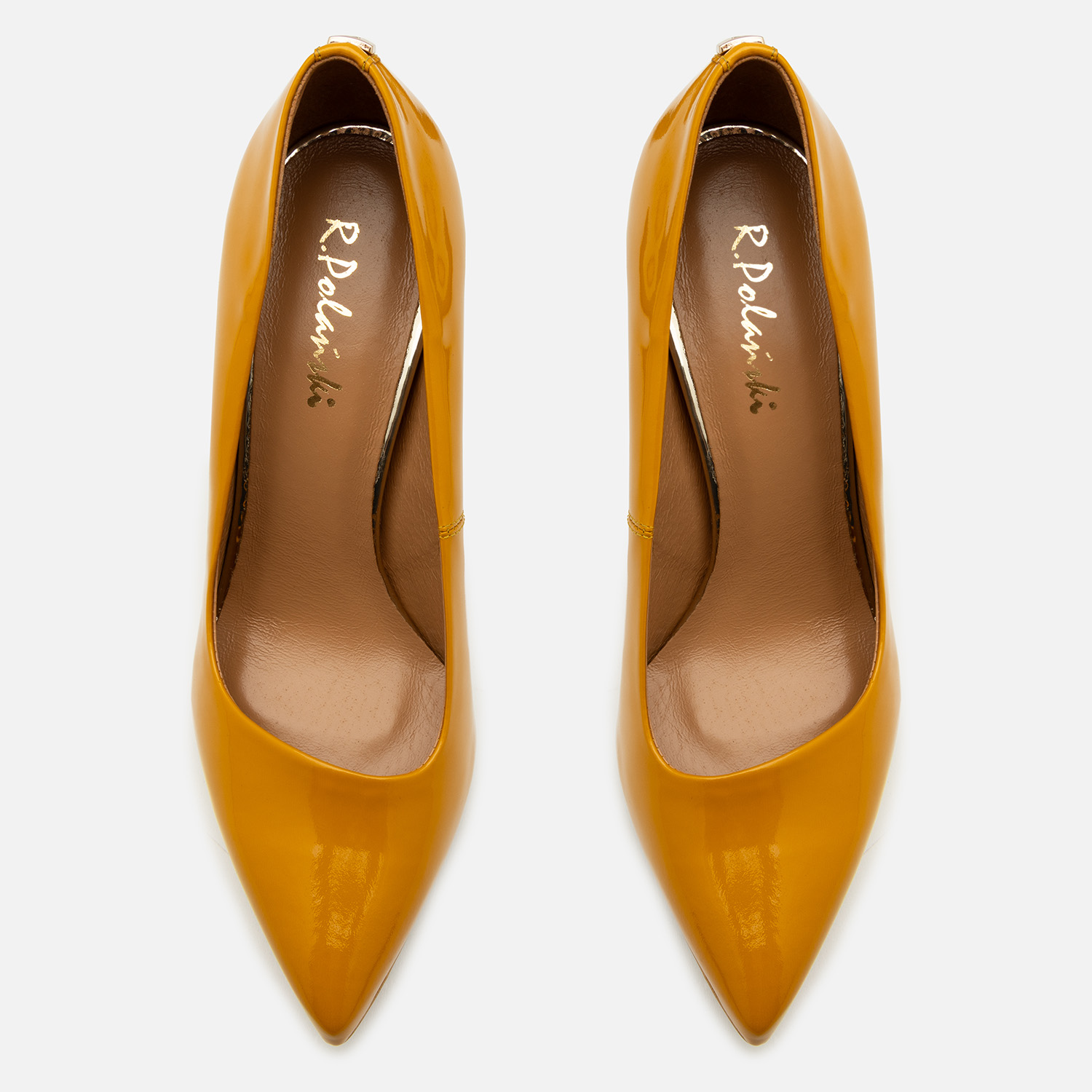 Szpilki w żółtym kolorze? Dlaczego nie! Buty R.Polański 760/A nie pozwolą nikomu przejść obok nich obojętnie. Naturalna skóra lakierowana została wybarwiona na piękny odcień, który wspaniale uzupełni stylizacje imprezowe, jak i bardziej klasyczne. Klasyczny fason ze szpiczastym noskiem i subtelną szpilką sprawia, że buty te podkreślają smukłość nóg i wizualnie je wydłużają.