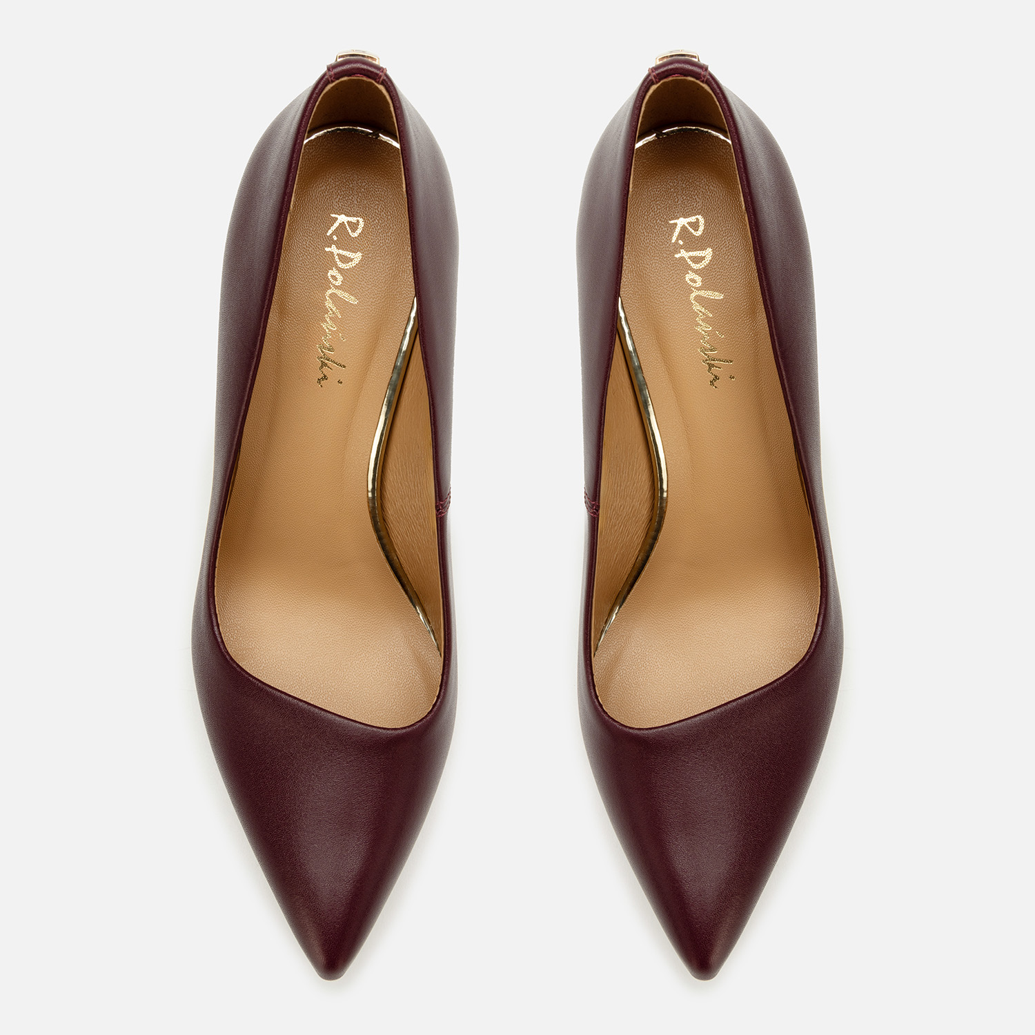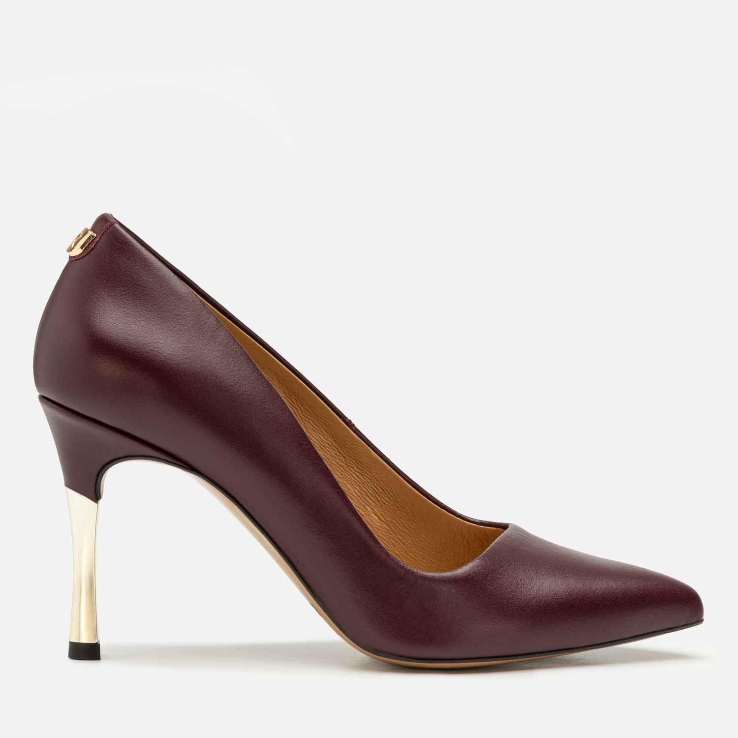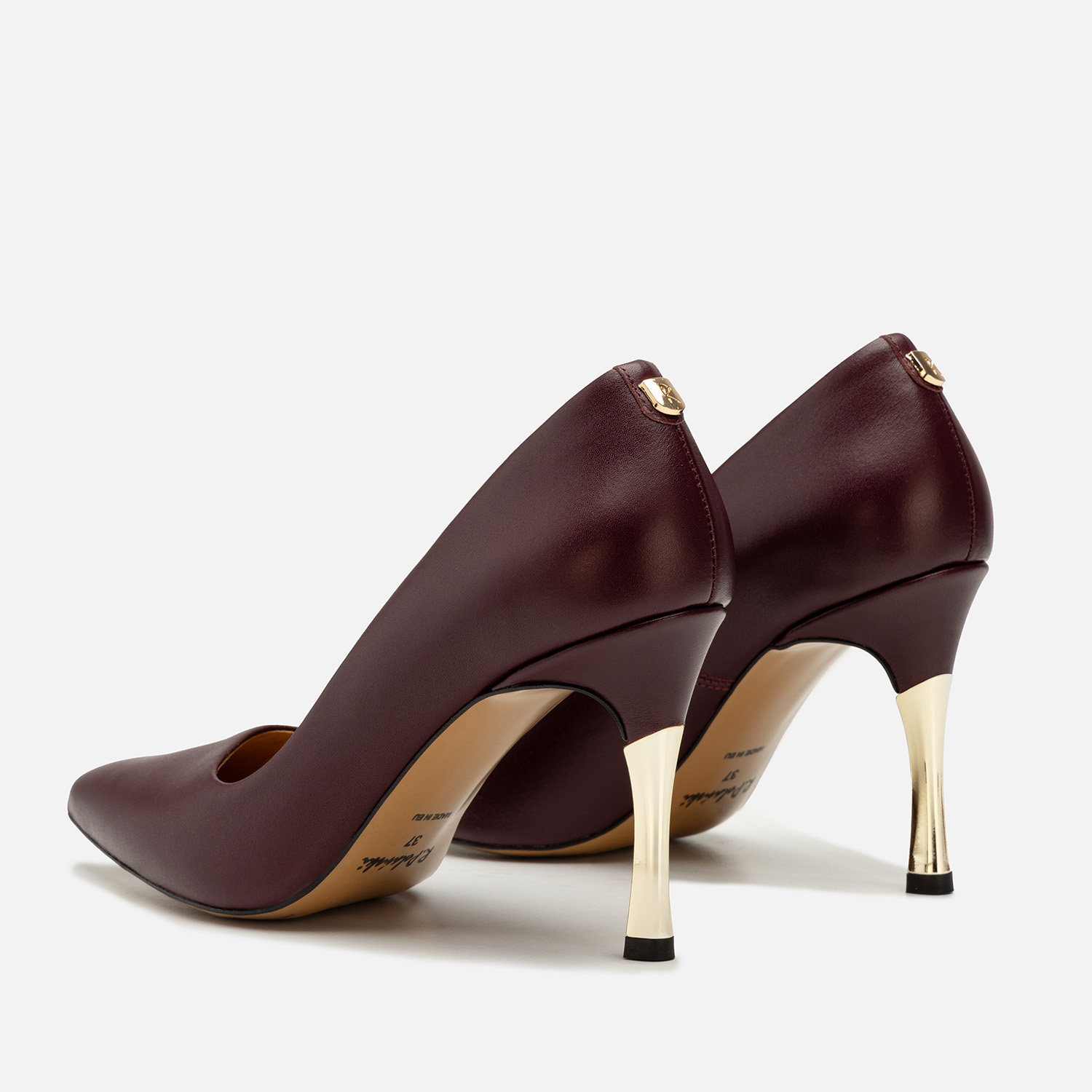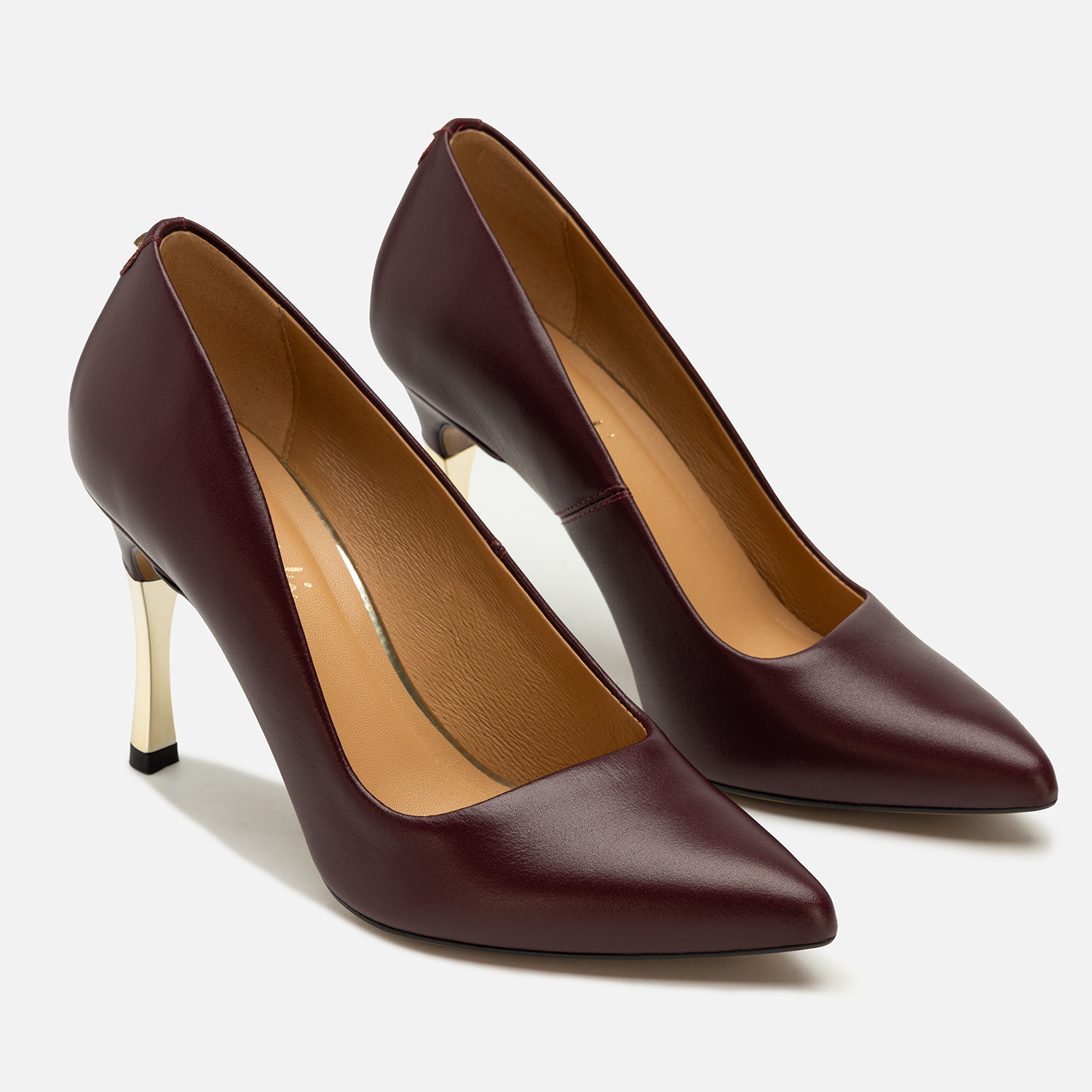 Do czego pasują bordowe szpilki? Możliwości stylizacyjnych jest bez liku, jednak by uzyskać naprawdę zjawiskowy efekt, warto zadbać, by czółenka były wykonane z materiałów wysokiej jakości i starannie wykończone — tak jak w przypadku tego modelu. Naturalna skóra licowa została wybarwiona na wyrazisty odcień, a obcasy pokryto złocistą powłoką. Całość uzupełnia nienaganne szycie i ozdobna, ale subtelna blaszka z logo producenta.
