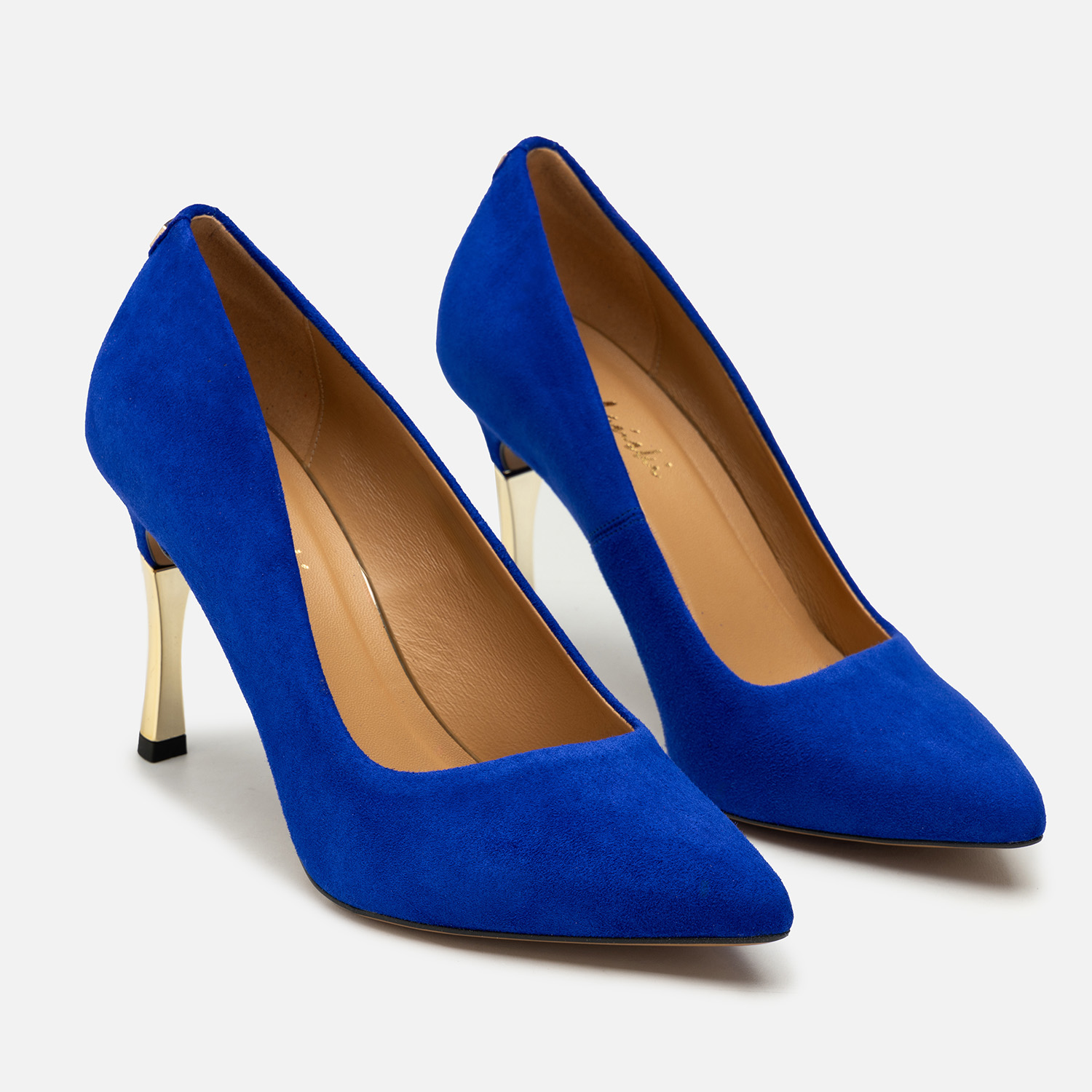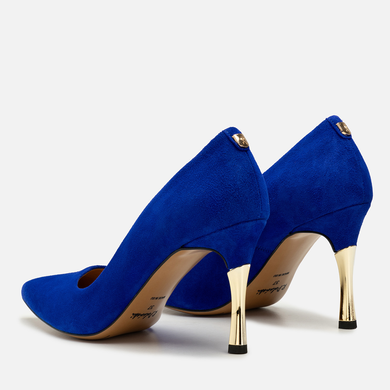 Do czego pasują chabrowe szpilki? Możliwości stylizacyjnych jest bez liku, jednak by uzyskać naprawdę zjawiskowy efekt, warto zadbać, by czółenka były wykonane z materiałów wysokiej jakości i starannie wykończone — tak jak w przypadku tego modelu. Naturalna skóra zamszowa została wybarwiona na wyrazisty odcień, a obcasy pokryto złocistą powłoką. Całość uzupełnia nienaganne szycie i ozdobna, ale subtelna blaszka z logo producenta.