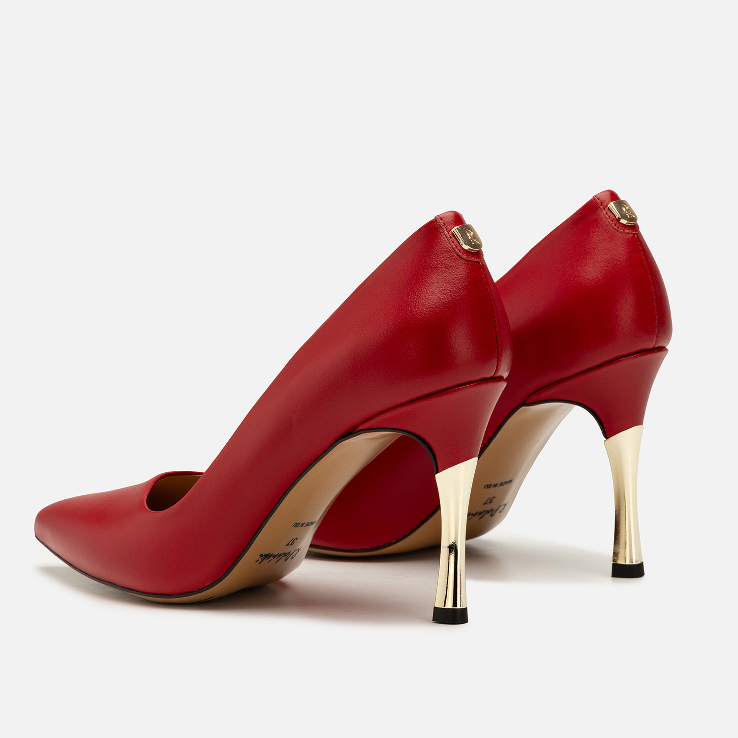 Do czego pasują czerwone szpilki? Możliwości stylizacyjnych jest bez liku, jednak by uzyskać naprawdę zjawiskowy efekt, warto zadbać, by czółenka były wykonane z materiałów wysokiej jakości i starannie wykończone — tak jak w przypadku tego modelu. Naturalna skóra licowa została wybarwiona na wyrazisty odcień, a obcasy pokryto złocistą powłoką. Całość uzupełnia nienaganne szycie i ozdobna, ale subtelna blaszka z logo producenta.