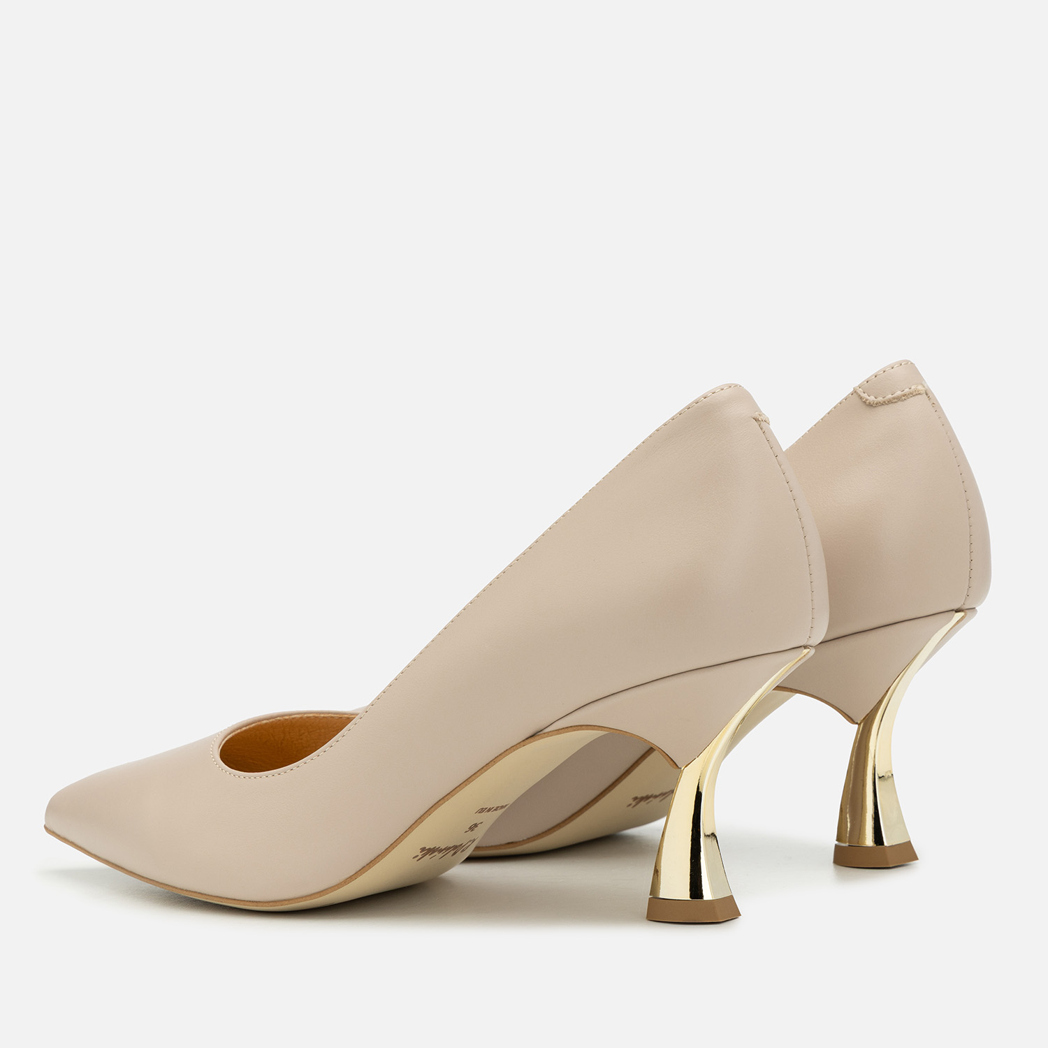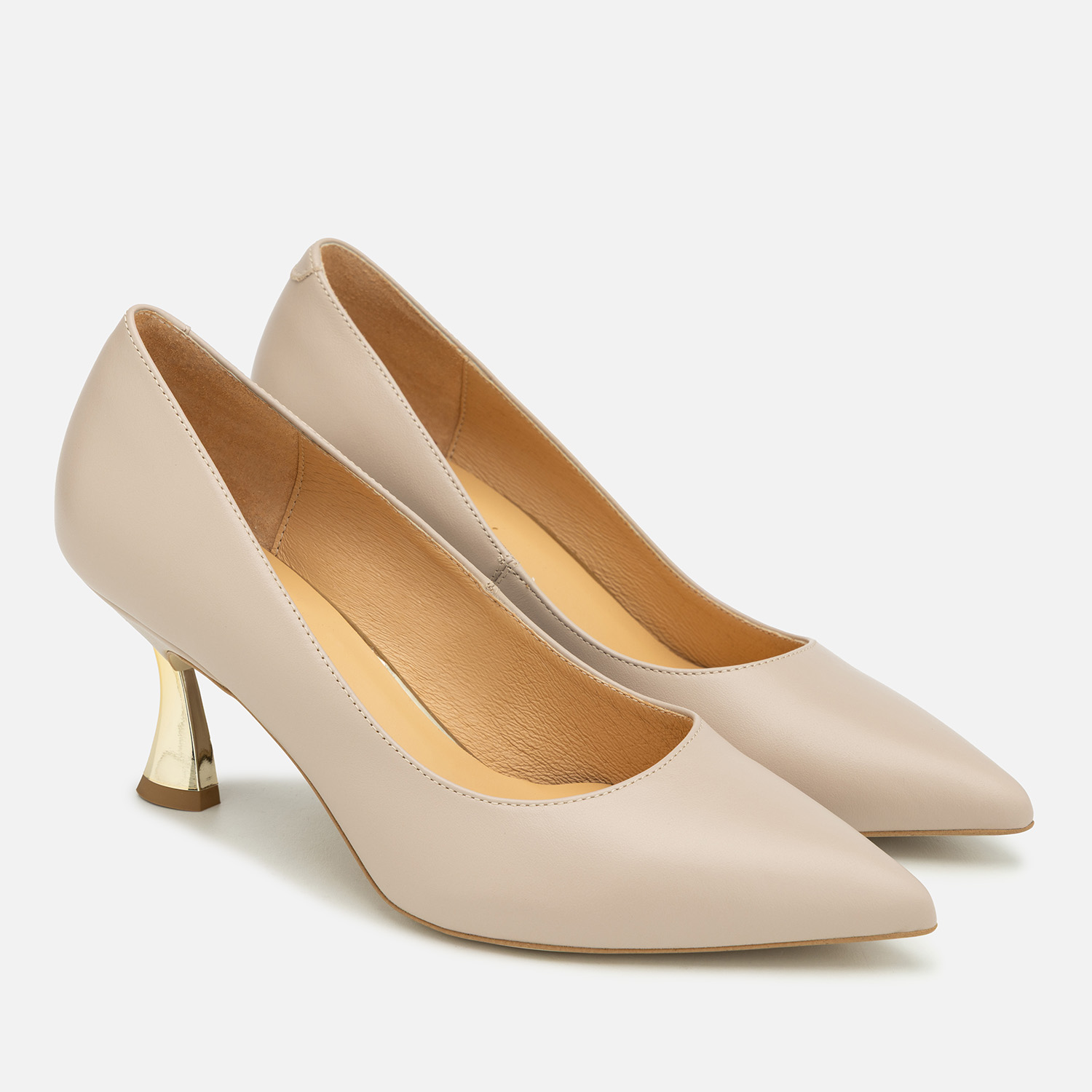 Czółenka damskie w pięknym kolorze, wykonane ze skóry naturalnej (wierzchnia warstwa: wysokogatunkowa skóra, wnętrze i wkładka: również skórzane, miękkie w dotyku i komfortowe podczas noszenia). Te buty to propozycja dla pań, które lubią zyskać wraz z obuwiem kilka dodatkowych centymetrów wzrostu, ale jednocześnie zależy im na dużej stabilności podczas chodzenia i wygodzie. Obcas typu kieliszkowego ma stosunkowo niewielką wysokość - 6,6 cm, a dzięki swojej budowie zapobiega kołysaniu się i utracie równowagi. Warto też dodać, że prezentuje się wyjątkowo atrakcyjnie dzięki zabarwieniu na metaliczne, lustrzane złoto.
