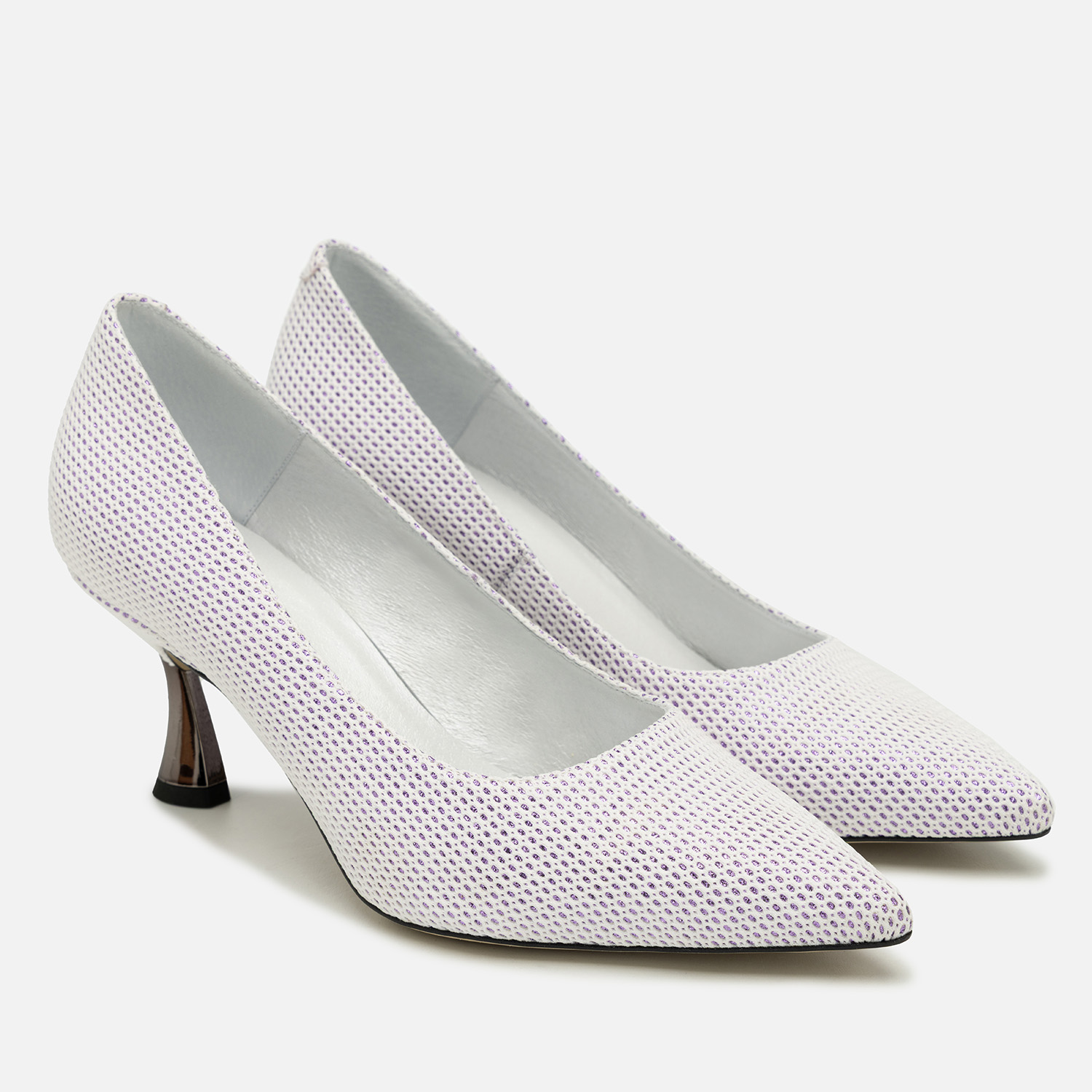 Czółenka damskie w pięknym kolorze, wykonane ze skóry naturalnej (wierzchnia warstwa: wysokogatunkowa skóra, wnętrze i wkładka: również skórzane, miękkie w dotyku i komfortowe podczas noszenia). Te buty to propozycja dla pań, które lubią zyskać wraz z obuwiem kilka dodatkowych centymetrów wzrostu, ale jednocześnie zależy im na dużej stabilności podczas chodzenia i wygodzie. Obcas typu kieliszkowego ma stosunkowo niewielką wysokość - 6,6 cm, a dzięki swojej budowie zapobiega kołysaniu się i utracie równowagi. Warto też dodać, że prezentuje się wyjątkowo atrakcyjnie dzięki zabarwieniu na metaliczne, lustrzane srebro.