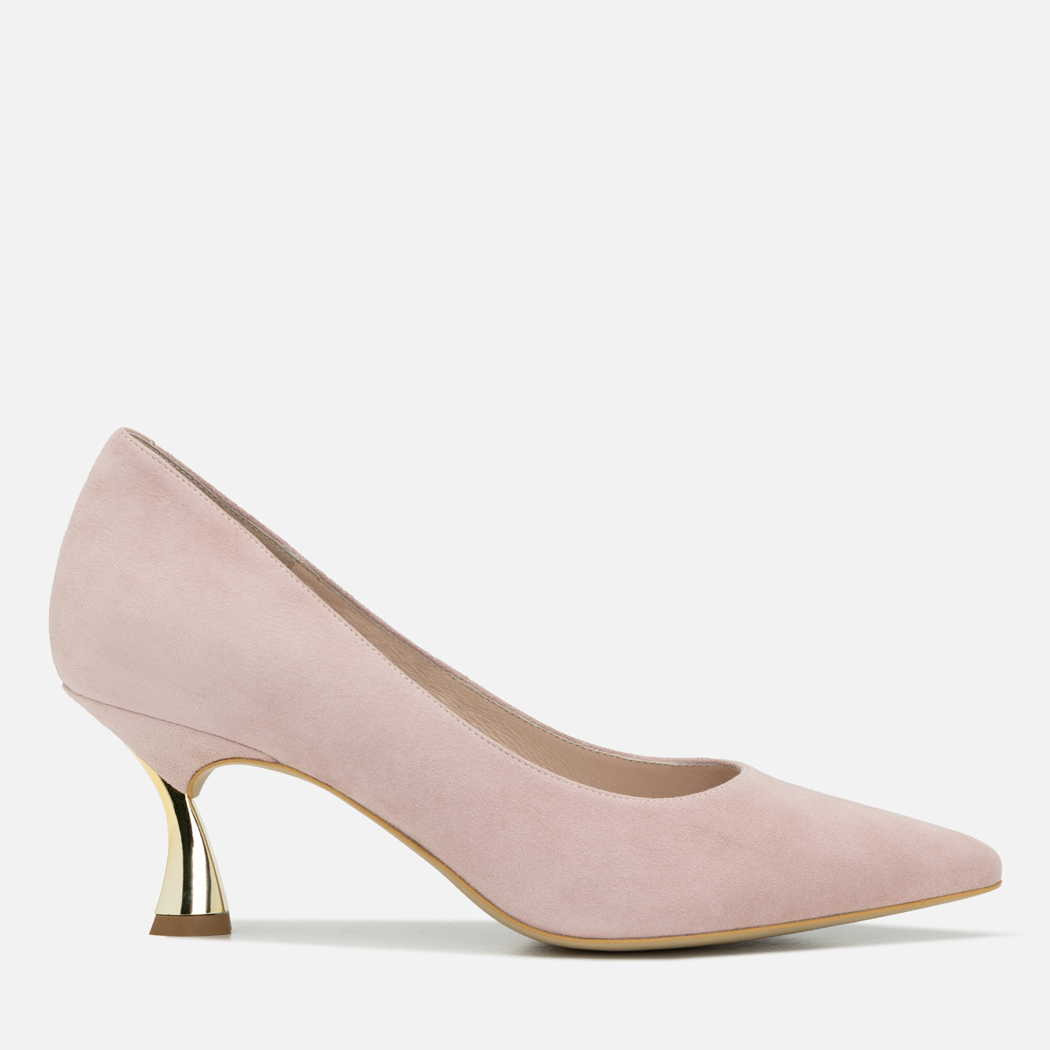 Czółenka damskie w pięknym kolorze, wykonane ze skóry naturalnej (wierzchnia warstwa: wysokogatunkowa skóra, wnętrze i wkładka: również skórzane, miękkie w dotyku i komfortowe podczas noszenia). Te buty to propozycja dla pań, które lubią zyskać wraz z obuwiem kilka dodatkowych centymetrów wzrostu, ale jednocześnie zależy im na dużej stabilności podczas chodzenia i wygodzie. Obcas typu kieliszkowego ma stosunkowo niewielką wysokość - 6,6 cm, a dzięki swojej budowie zapobiega kołysaniu się i utracie równowagi. Warto też dodać, że prezentuje się wyjątkowo atrakcyjnie dzięki zabarwieniu na metaliczne, lustrzane złoto.