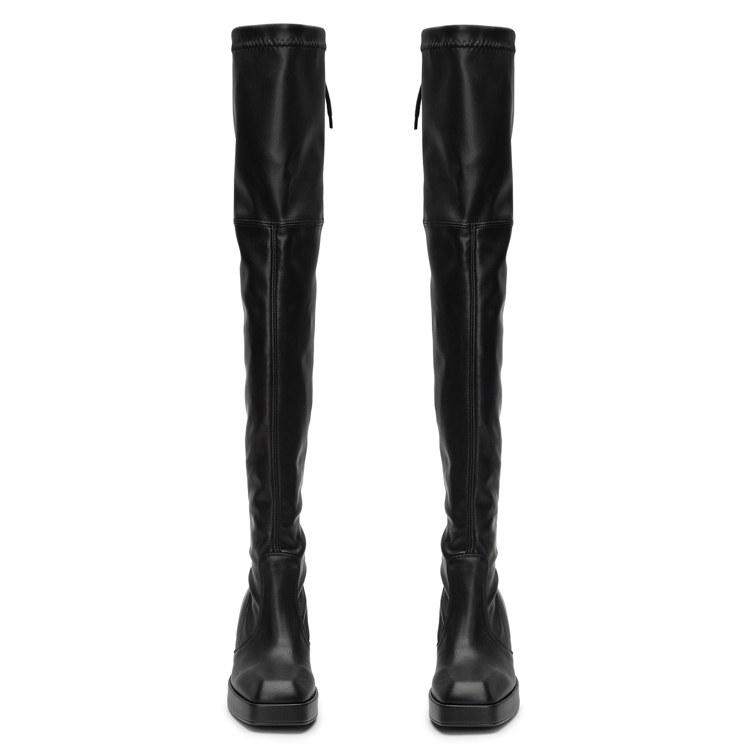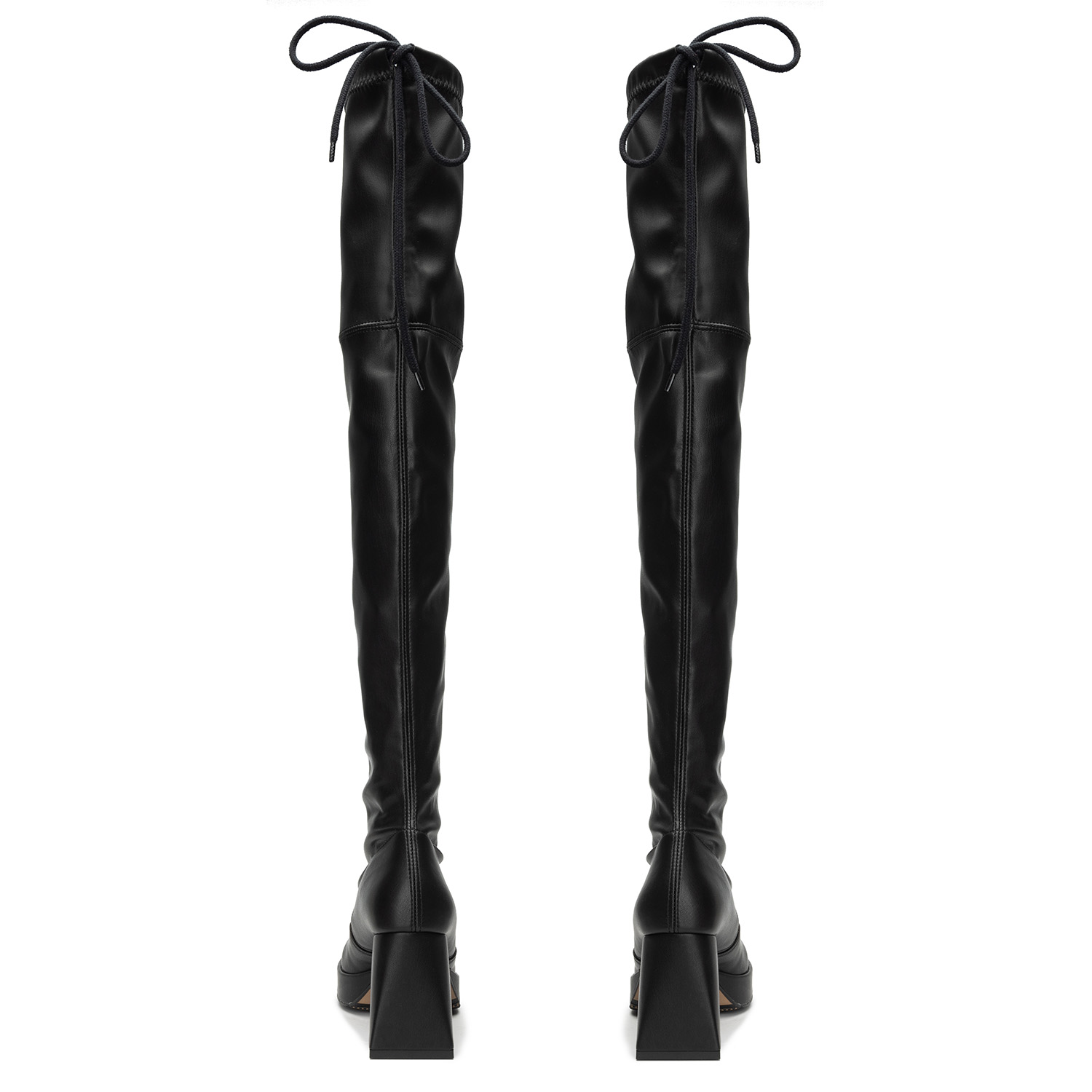 Klasyczne, czarne kozaki to bez wątpienia obowiązkowa pozycja dla wszystkich kobiet ceniących sobie ponadczasowy styl i elegancję, niezależnie od pory roku. Wysoka na 68 cm cholewka, nie tylko ciekawie uzupełni stylizację i przyciągnie uwagę, ale także ochroni skórę przed zimnem. Kozaki są idealne zarówno dla wysokich kobiet, jak i niskich. Osoby o niższym wzroście mogą niedbale pofałdować cholewkę, przez co cała stylizacja uzyska artystyczny wygląd. Obuwie świetnie wygląda z eleganckimi kreacjami, prostymi sukienkami lub spódnicami, które można bez obaw założyć, nawet przy niskiej temperaturze. To, co wyróżnia model na tle innych to oryginalnie wyprofilowany obcas o wysokości 8,6 cm. Wyższy obcas wysmukli całą sylwetkę i podkreśli elegancki wygląd. Damskie kozaki o tym kroju sprawdzą się na każdą okazję.
