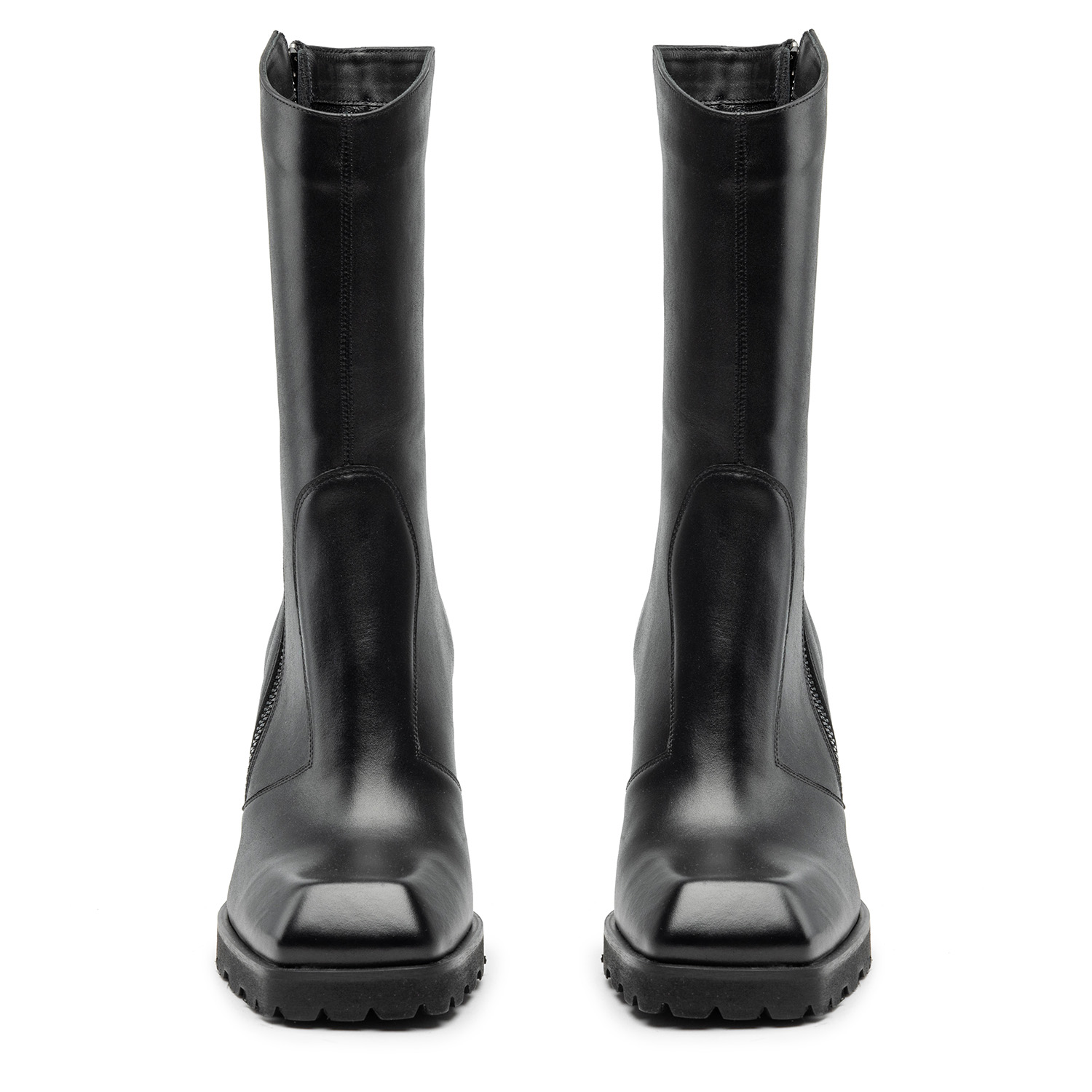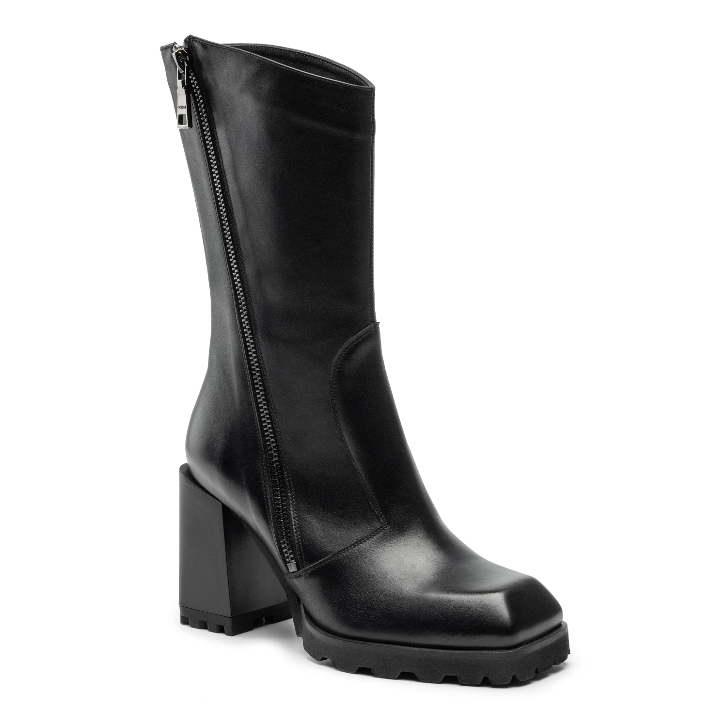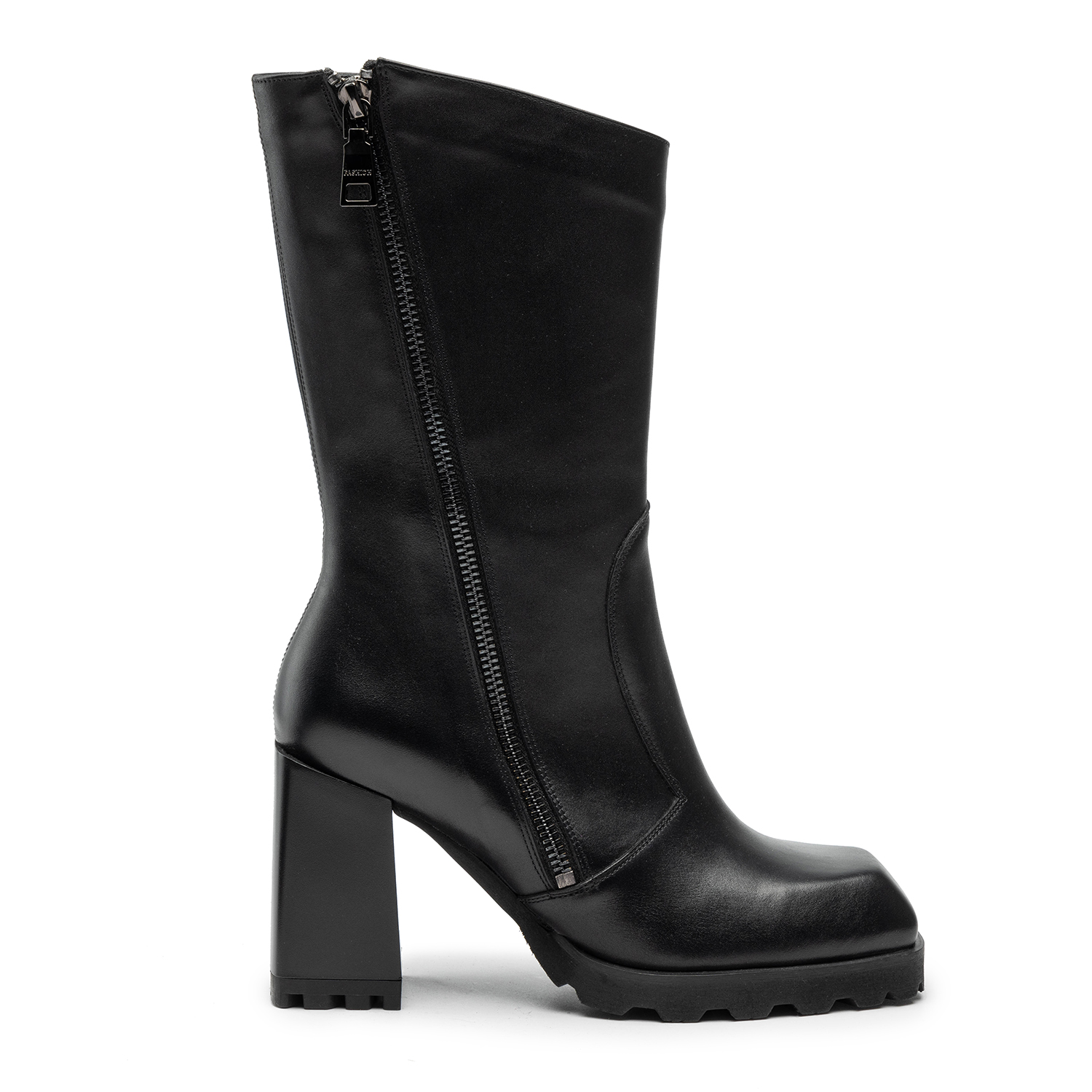 Czarny LicoJeżeli szukasz odrobiny ekstrawagancji w Twojej zimowej stylizacji, oferowane kozaki będą idealnym wyborem. Prezentujemy wysokiej klasy buty zimowe w kilku wariantach kolorystycznych — głębokiej czerni i nieskazitelnej bieli. Kozaki wykonane są z prawdziwej skóry licowej, która nadaje wyjątkowego połysku. Buty są zapisane na suwak, a cholewka lekko rozszerzona u góry. Kwadratowy nosek i ścięty słupek obcasa dodaje charakteryzującego wyglądu kozakom, dzięki którym będą wyróżniać się na tle klasycznych modeli. Mimo że obcas jest wysoki na niemal 9 centymetrów, jest stabilny, a podeszwa z wyżłobieniami typu „traktor” dodatkowo ułatwia poruszanie się nawet po wymagających nawierzchniach. W wersji białej podeszwa jest również czarna, co nadaje kontrastowego, nietuzinkowego wyglądu. Dobranie wysokiej jakości materiałów zapewnia komfort i trwałość obuwia przez długi czas.