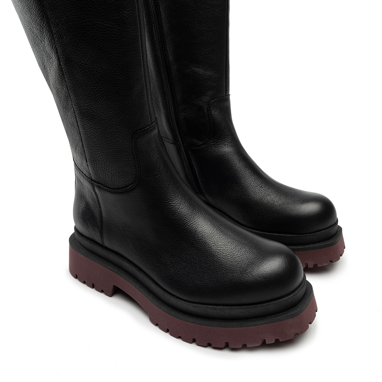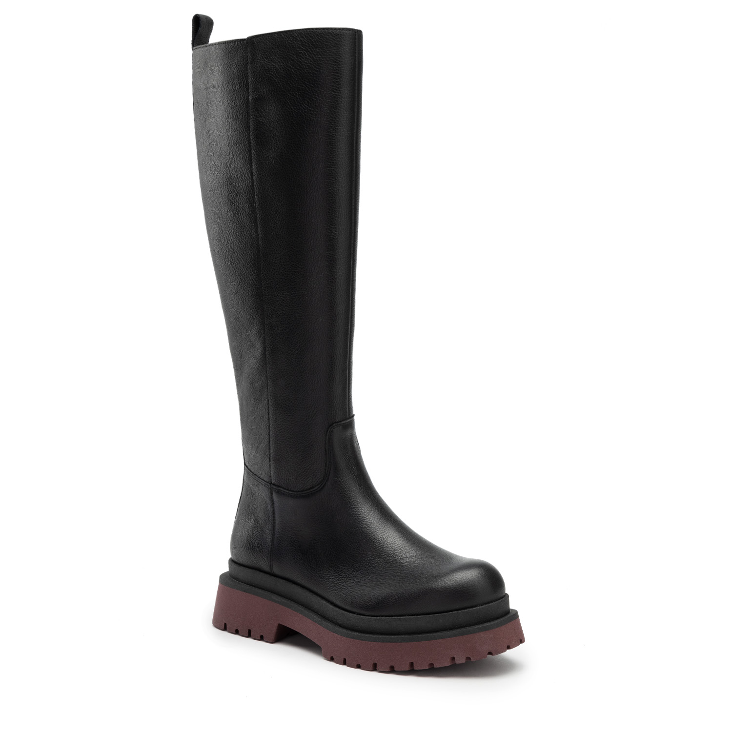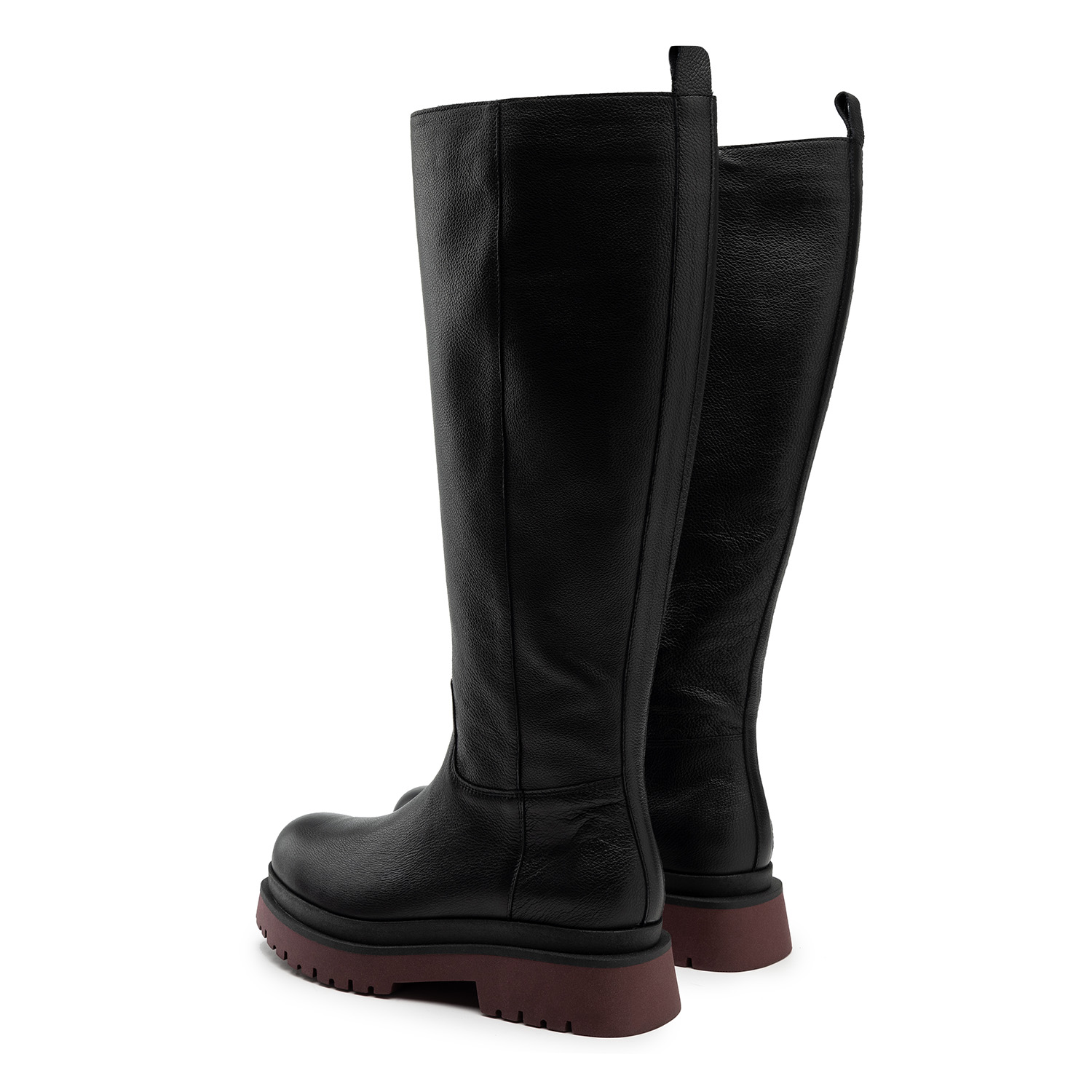 Ponadczasowe czarne kozaki to klasyk zimowej garderoby — nie bez przyczyny, wysokie buty są wygodne, komfortowe, i idealne na wiele okazji. Doskonale pasują do jeansów, jak i sukienek, krótkich kurtek oraz płaszczy i futer. Odpowiednio pielęgnowane i zabezpieczone przed wilgocią buty przetrwają wiele sezonów, jest to więc dobra inwestycja na nadchodzący sezon zimowy. Kozaki dostępne w sprzedaży są wytwarzane z wysokiej klasy materiałów pochodzenia naturalnego, w tym przypadku skóry licowej z lekkim połyskiem. Buty mają lekko zaokrąglony nosek, który również nie ulega zmianom trendów na przestrzeni lat. Obcas to mniej niż 5 centymetrów, a podeszwa posiada liczne wyżłobienia, dzięki czemu utrzymanie stabilności nie będzie sprawiać problemów, nawet na najbardziej uciążliwym lub śliskim podłożu.