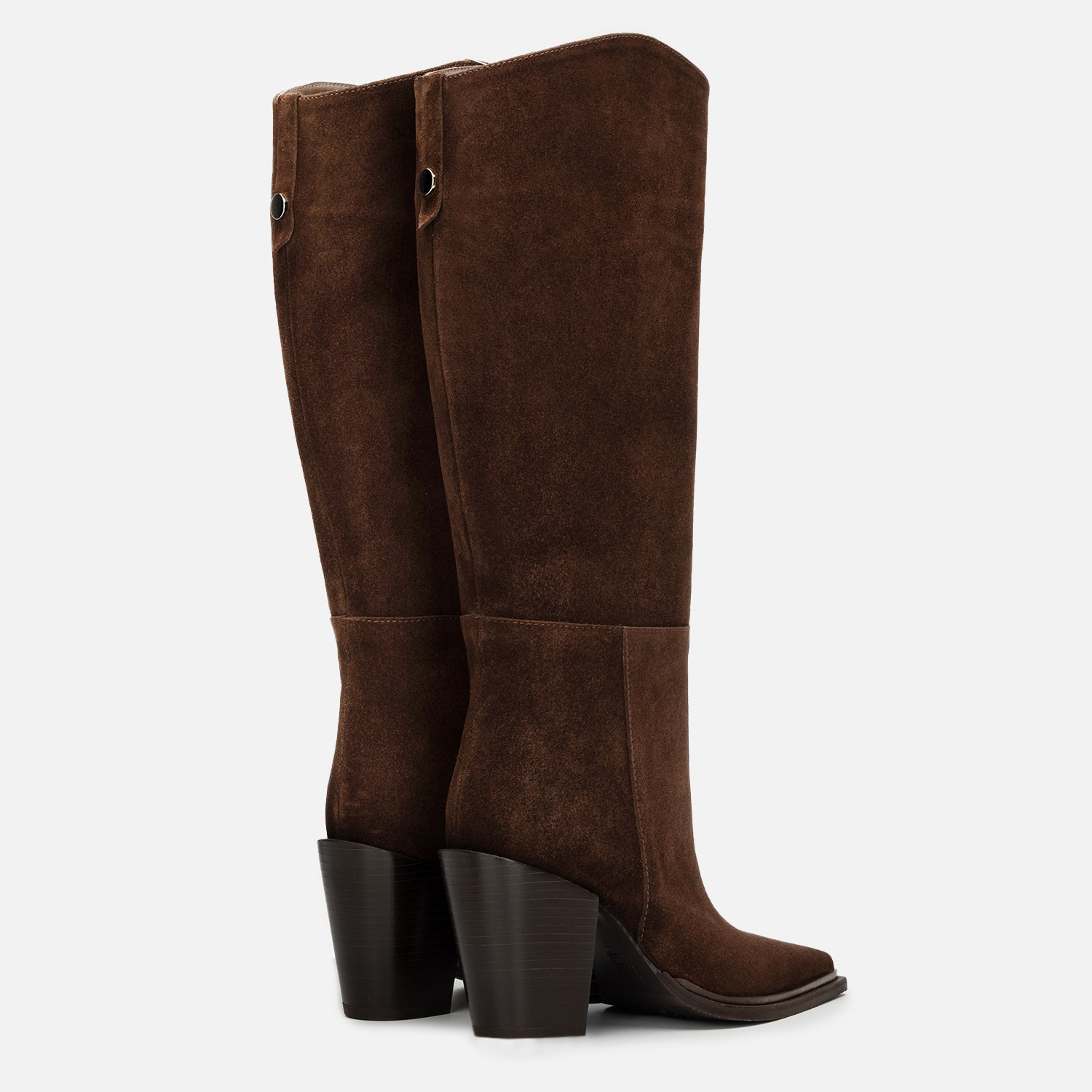 Brązowe zamszowe kozaki na stabilnym obcasie – R.Polański 2269