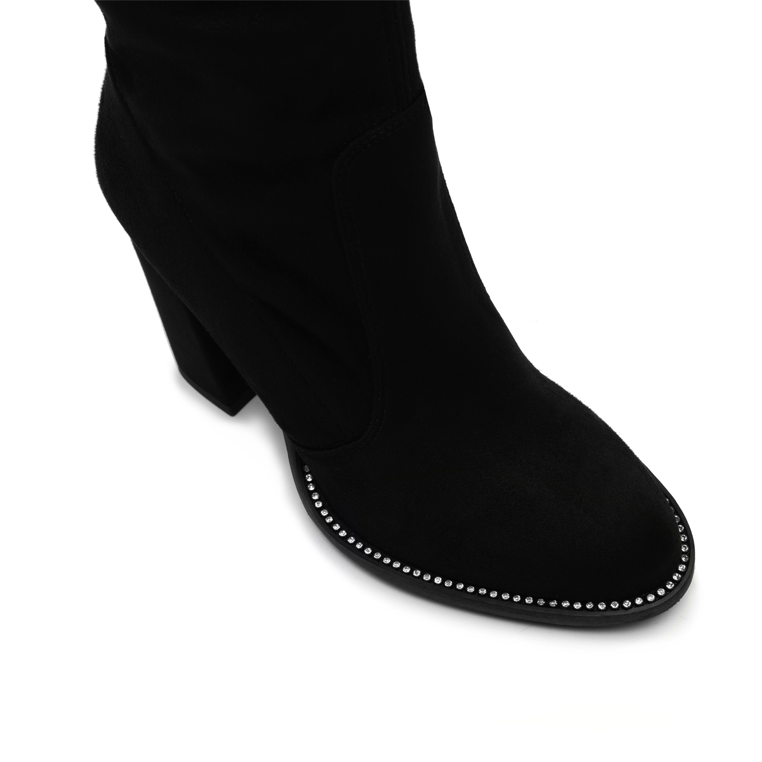 Czarny ZamszKozaki damskie oferowane sprawdzą się zwłaszcza na chłodniejsze dni. Wysoka cholewka wykonana z lycry ochroni przed wiatrem i zimnem, a przy tym nadaje butom lekkości. Materiał, z którego została wykonana, jest łatwy w pielęgnacji oraz trwały. Wnętrze butów to wyściółka wykonana ze skóry, by zwiększyć wygodę w trakcie użytkowania. Wkładka w obuwiu również jest skórzana, by zapewnić komfort i stabilizację stopy. W kozakach tych można udać się na jesienno — zimowy spacer nawet po śnieżnym czy nierównym gruncie. Podeszwa obuwia to wysokogatunkowe tworzywo, które zapewnia trwałość i odporność nawet na złe warunki atmosferyczne. W kozakach możesz wyjść na zewnątrz nawet w chłodne dni, nie martwiąc się, że zmarzną Ci stopy. Buty mają 9,5-centymetrowy obcas, co dodaje im kobiecego charakteru, jednak dzięki temu, że jest on w kształcie słupka, nadal pozostają stabilne. Sprawdzą się zarówno na co dzień, jak i na wielkie wyjścia, doskonale będą współgrać z jeansami i kurtką, ale także będą eleganckim uzupełnieniem sukienki i płaszcza.