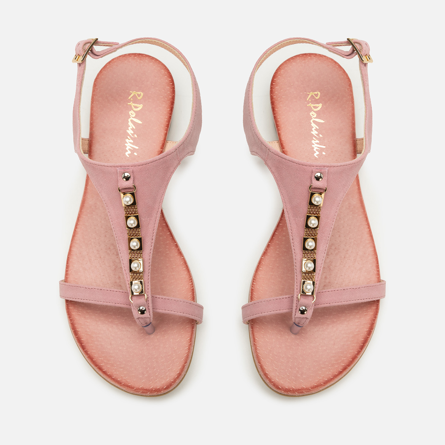 Sandały R.Polański 939 - Różowy Zamsz