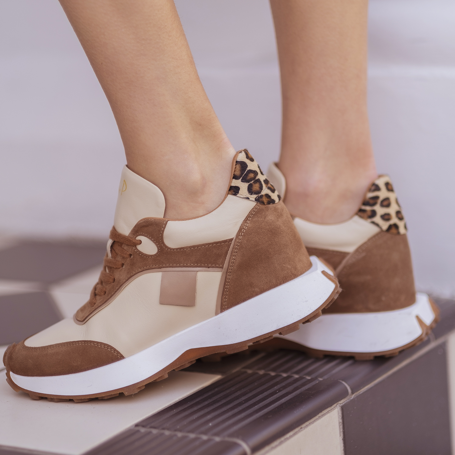 Beżowy Lico/Brązowy Zamsz