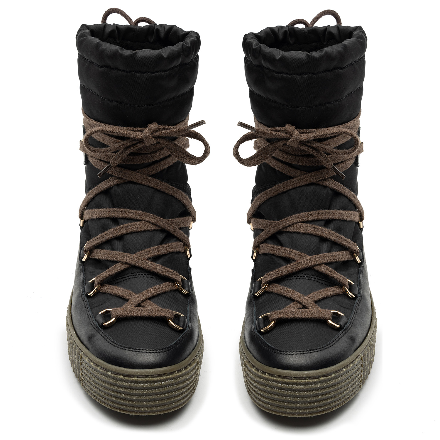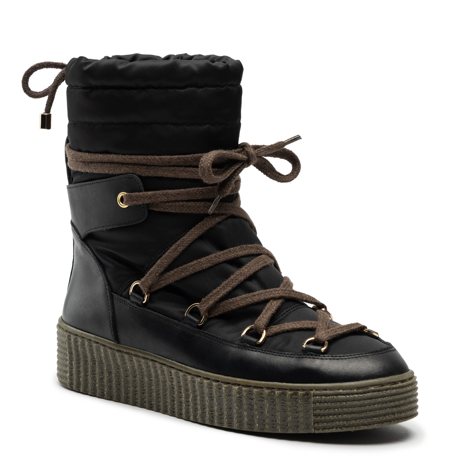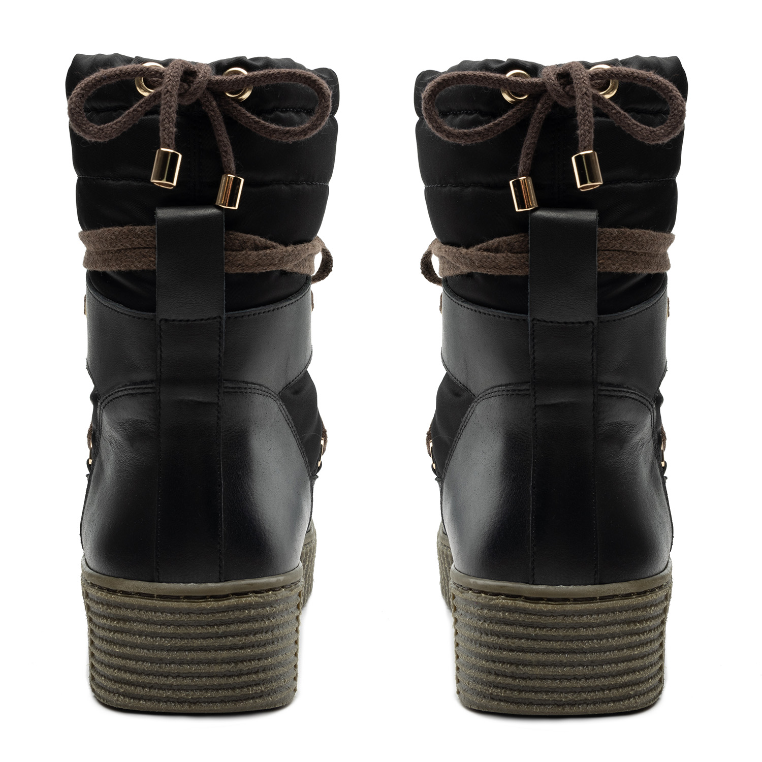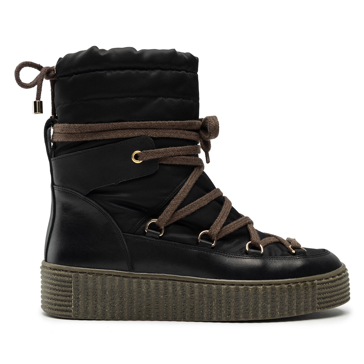 Damskie śniegowce to obowiązkowa propozycja dla wszystkich, którzy cenią sobie wygodę i utrzymanie ciepła podczas niskich temperatur. Model obuwia wykonany z naturalnej, licowej skóry oraz wysokogatunkowego tworzywa. W środku wyściełany został ociepleniem, które skutecznie utrzymuje ciepło, a ozdobne sznurowadła umożliwiają idealne dopasowanie butów do własnych preferencji. Płaska podeszwa wykonana z wysokogatunkowego tworzywa o grubości 3 cm stanowi świetny izolator od podłoża, a tłoczony bieżnik zapobiega ślizganiu się po nawierzchniach pokrytych lodem i śniegiem. Solidna cholewka o całkowitej wysokości 21 cm gwarantuje doskonałą ochronę przed mrozem. Śniegowce doskonale prezentują się w różnych stylizacjach, dodając im charakteru i przyciągając wzrok. Można je łączyć z wszelkimi stylizacjami — wygodnym dresem, sportowymi spodniami, codziennymi dżinsami, a także spódnicami lub sukienkami.