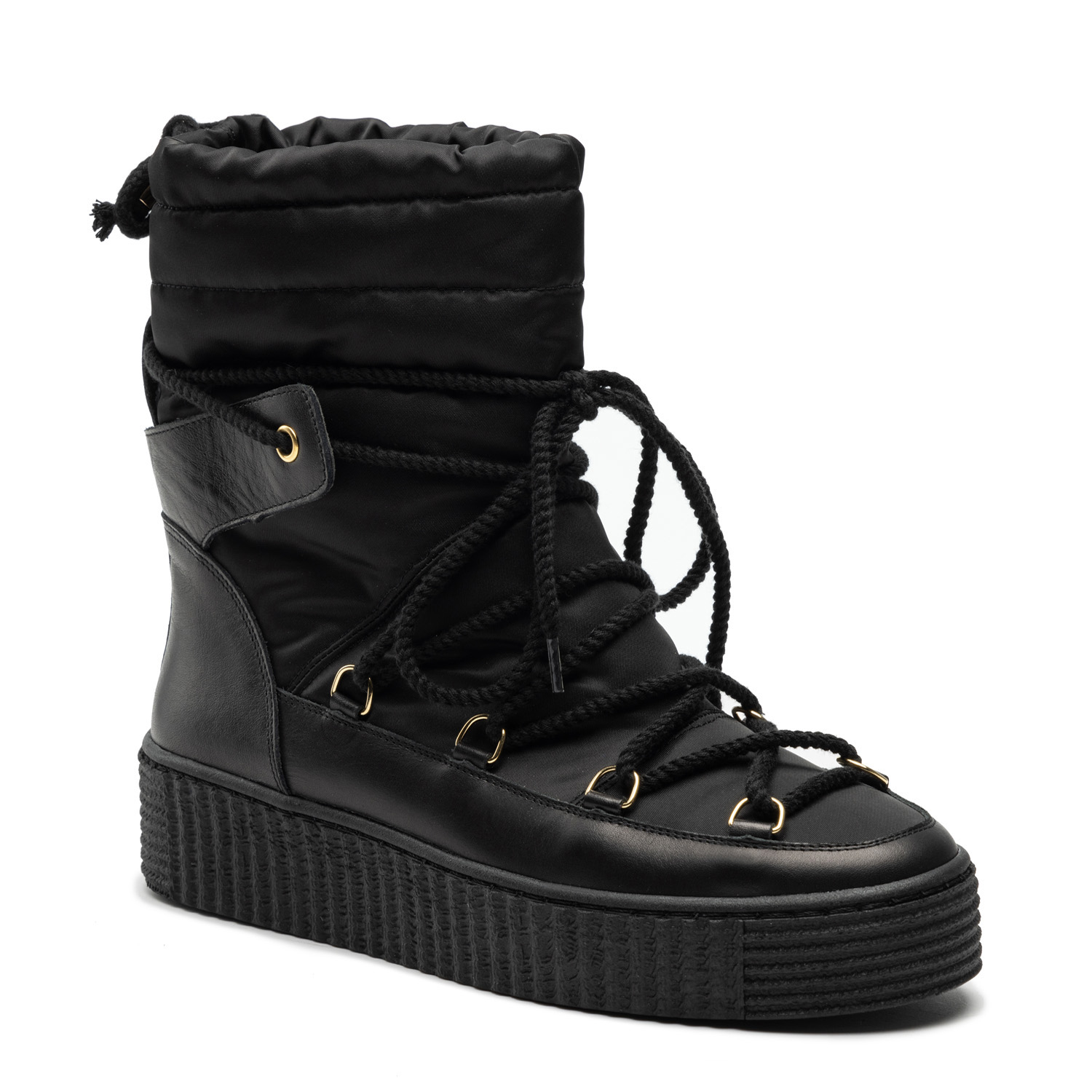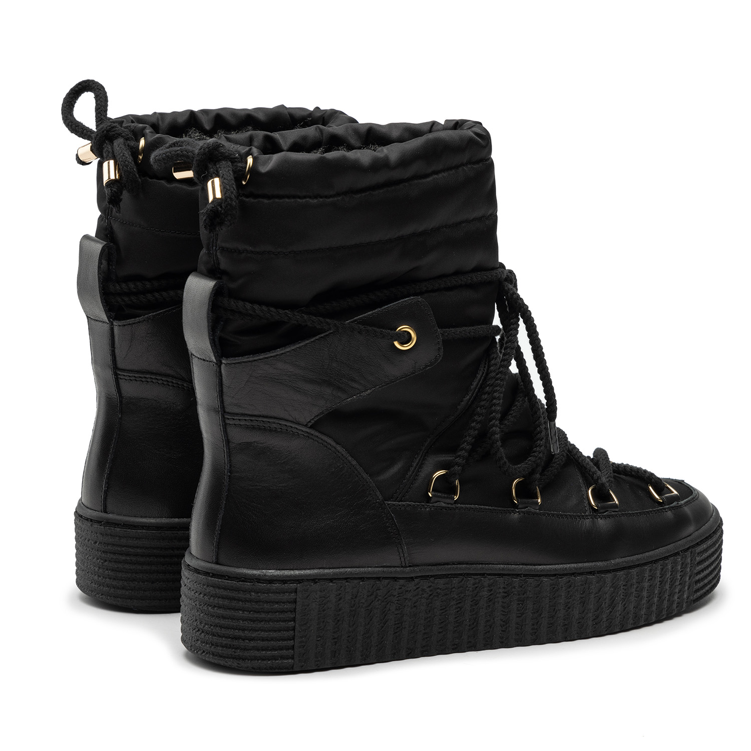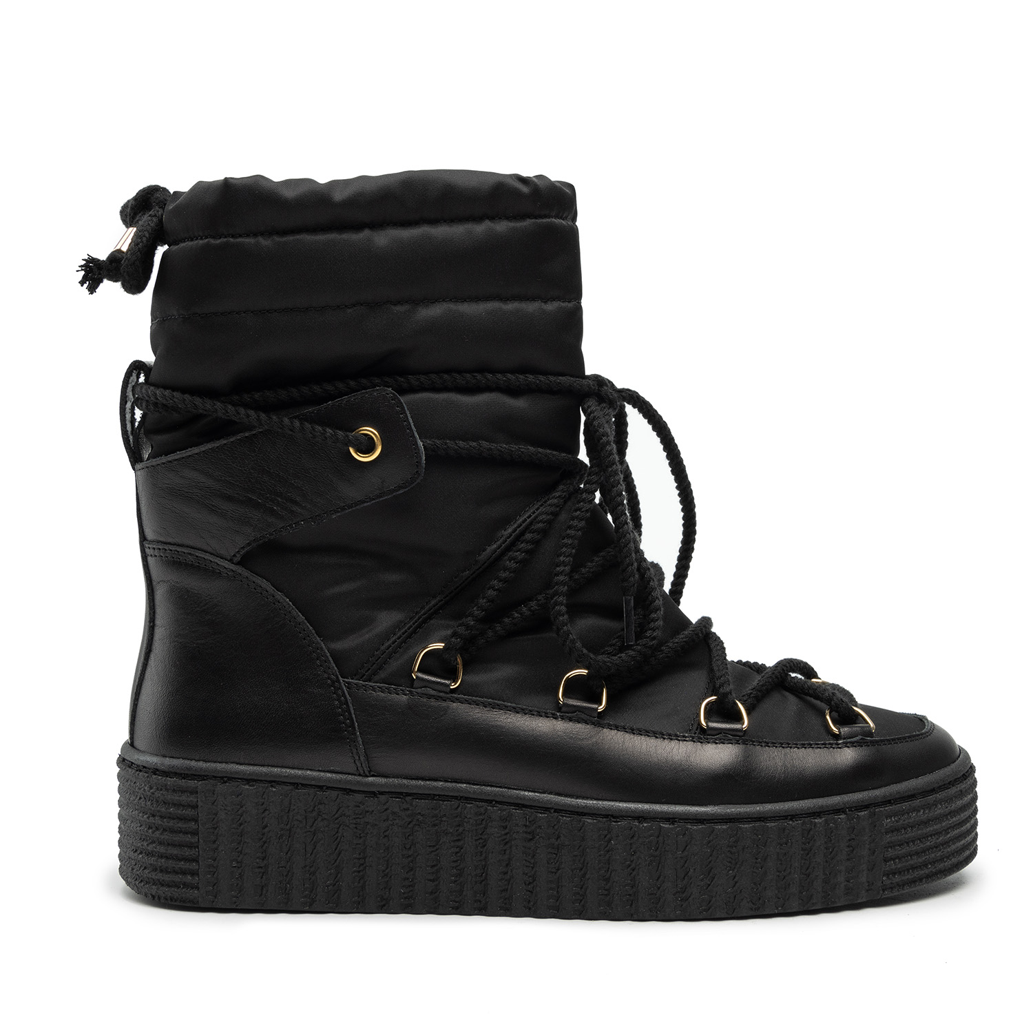 Damskie śniegowce to obowiązkowa propozycja dla wszystkich, którzy cenią sobie wygodę i utrzymanie ciepła podczas niskich temperatur. Model obuwia wykonany z naturalnej, licowej skóry oraz wysokogatunkowego tworzywa. W środku wyściełany został ociepleniem, które skutecznie utrzymuje ciepło, a ozdobne sznurowadła umożliwiają idealne dopasowanie butów do własnych preferencji. Płaska podeszwa wykonana z wysokogatunkowego tworzywa o grubości 3 cm stanowi świetny izolator od podłoża, a tłoczony bieżnik zapobiega ślizganiu się po nawierzchniach pokrytych lodem i śniegiem. Solidna cholewka o całkowitej wysokości 21 cm gwarantuje doskonałą ochronę przed mrozem. Śniegowce doskonale prezentują się w różnych stylizacjach, dodając im charakteru i przyciągając wzrok. Można je łączyć z wszelkimi stylizacjami — wygodnym dresem, sportowymi spodniami, codziennymi dżinsami, a także spódnicami lub sukienkami.