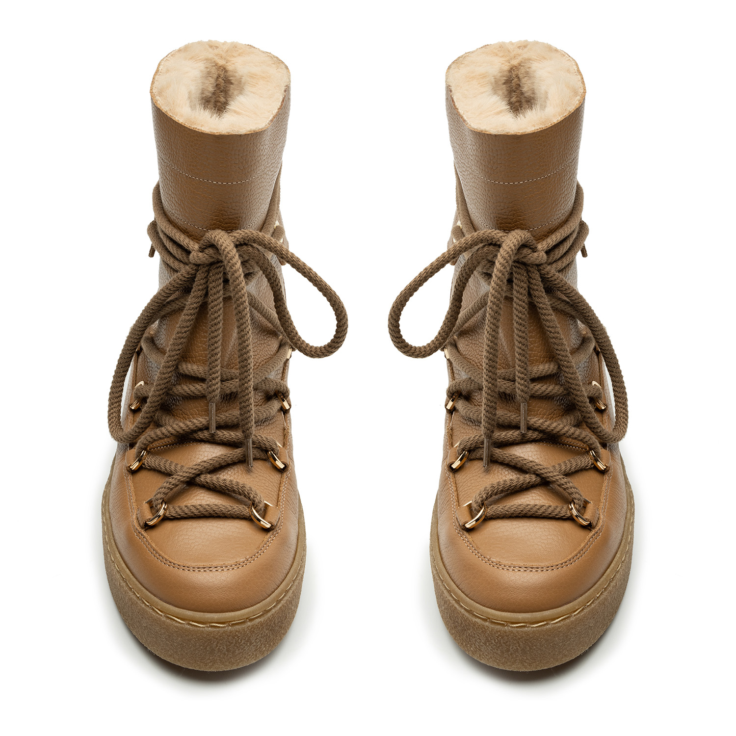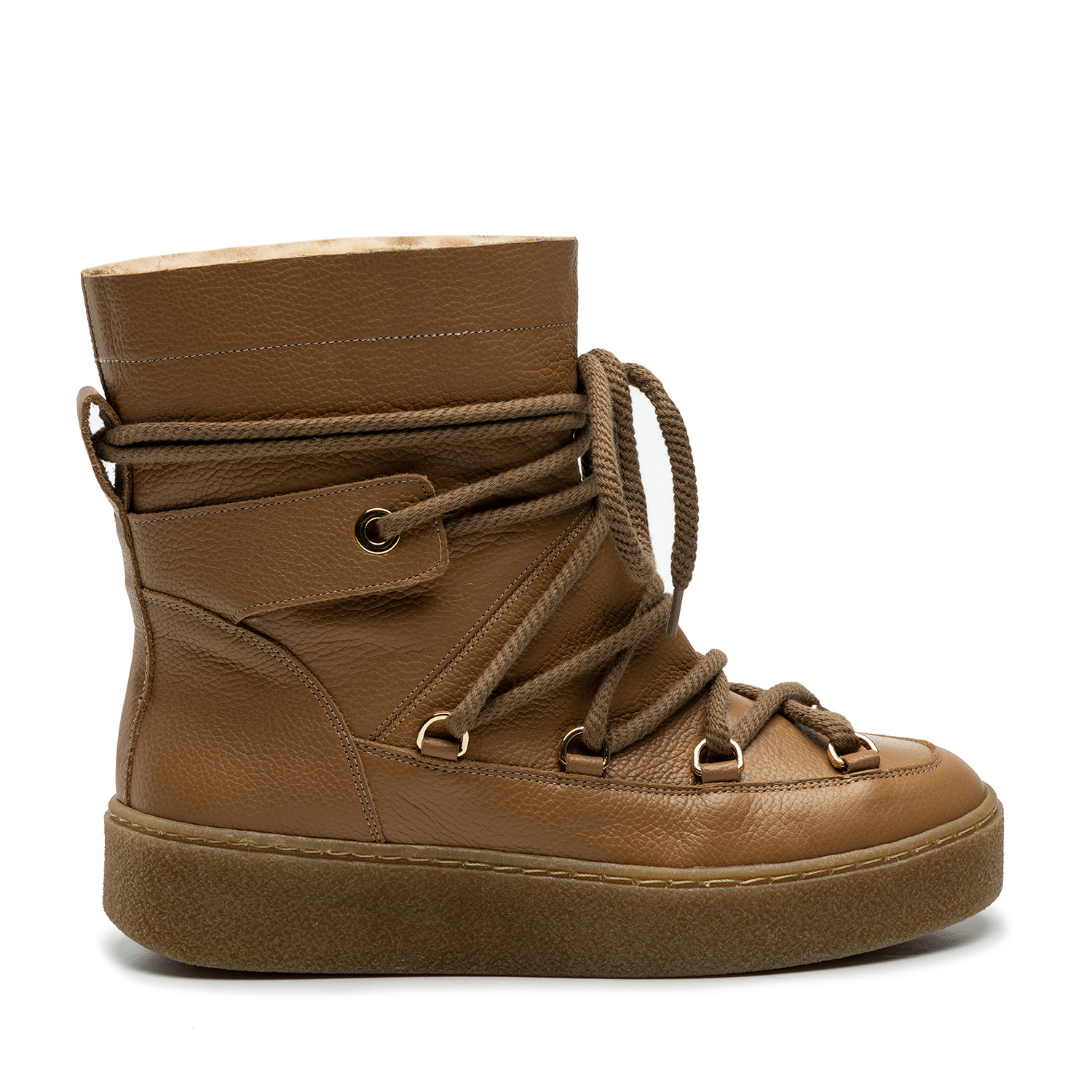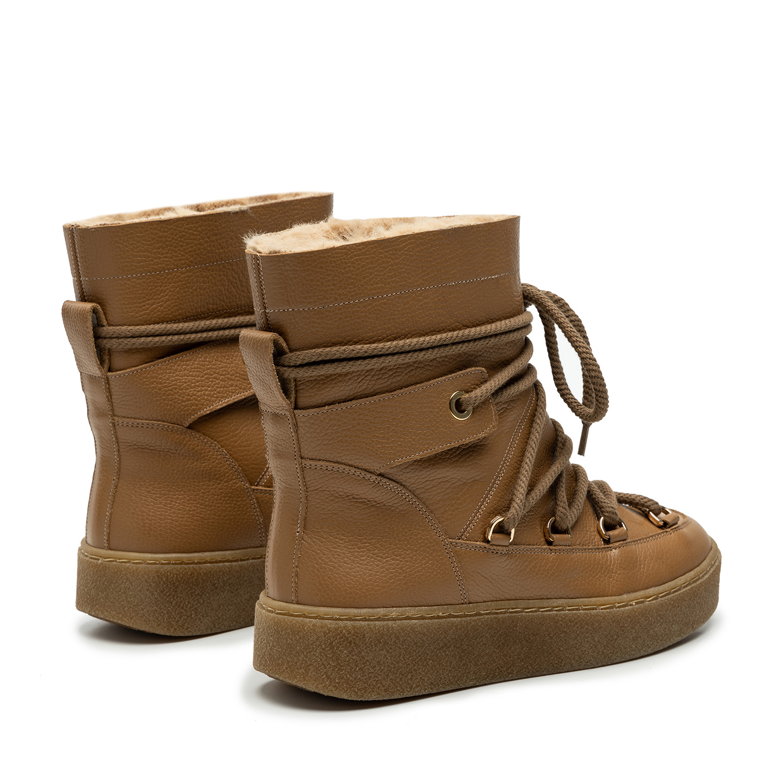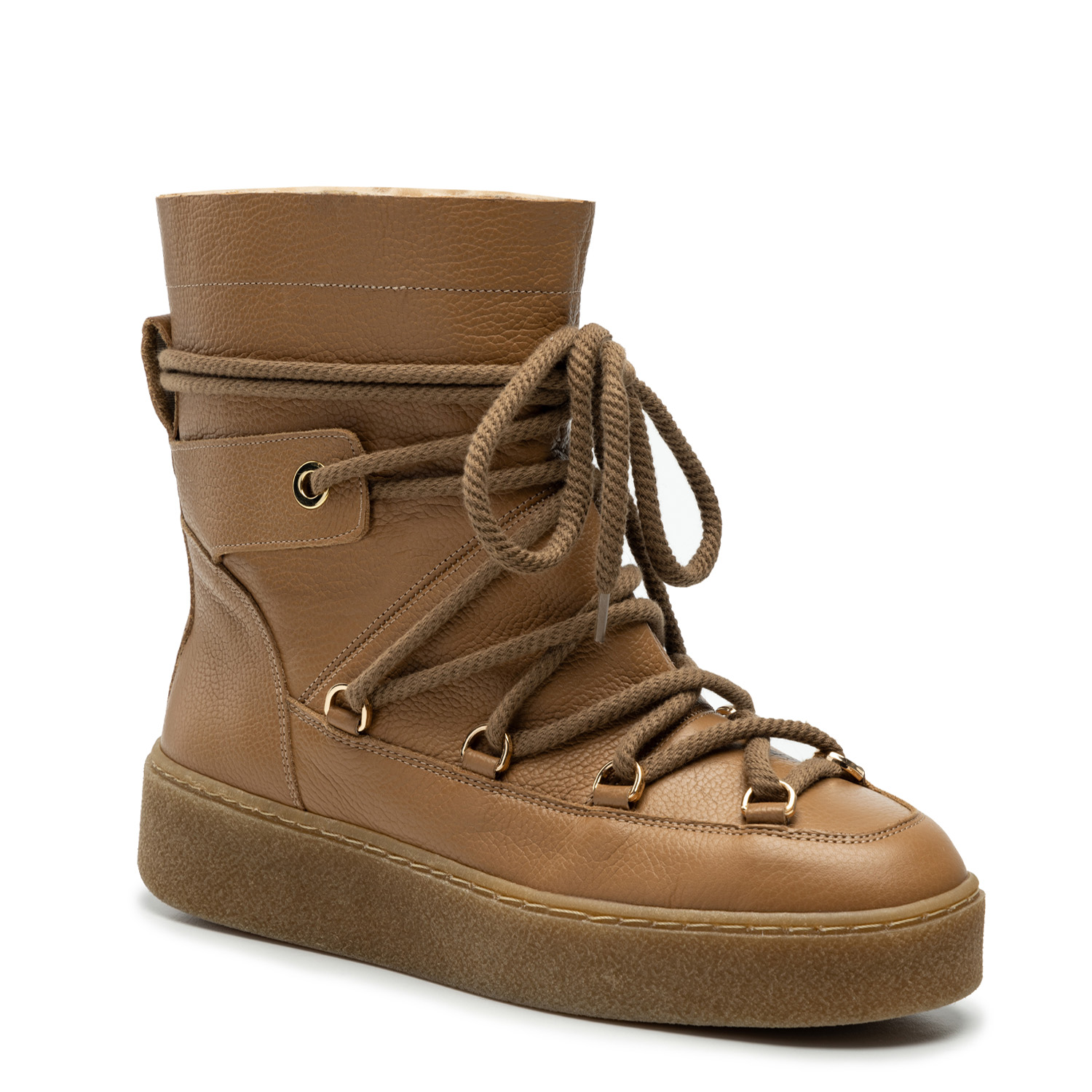 Damskie śniegowce to obowiązkowa propozycja dla wszystkich, którzy cenią sobie wygodę i utrzymanie ciepła podczas niskich temperatur. Model obuwia wykonany z naturalnej, licowej skóry, w środku wyściełany ociepleniem, które skutecznie utrzymuje ciepło, a ozdobne sznurowadła umożliwiają idealne dopasowanie butów do własnych preferencji. Płaska, gładka podeszwa wykonana z wysokogatunkowego tworzywa o grubości 3 cm stanowi świetny izolator od podłoża. Solidna cholewka o całkowitej wysokości 19,5 cm gwarantuje doskonałą ochronę przed mrozem. Śniegowce doskonale prezentują się w różnych stylizacjach, dodając im charakteru i przyciągając wzrok. Można je łączyć z wszelkimi stylizacjami — wygodnym dresem, sportowymi spodniami, codziennymi dżinsami, a także spódnicami lub sukienkami.