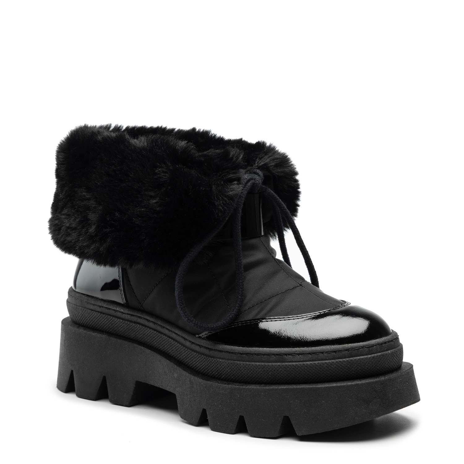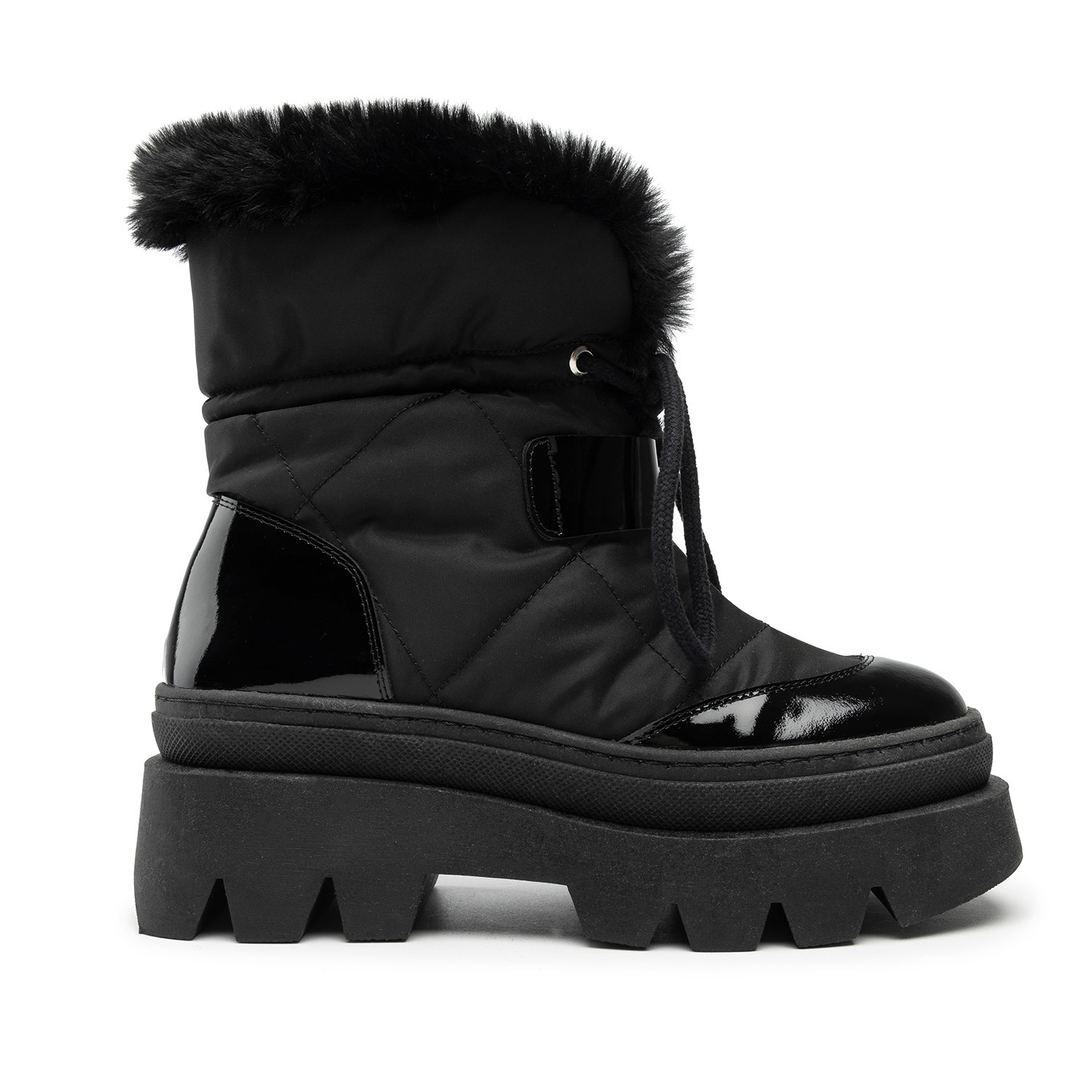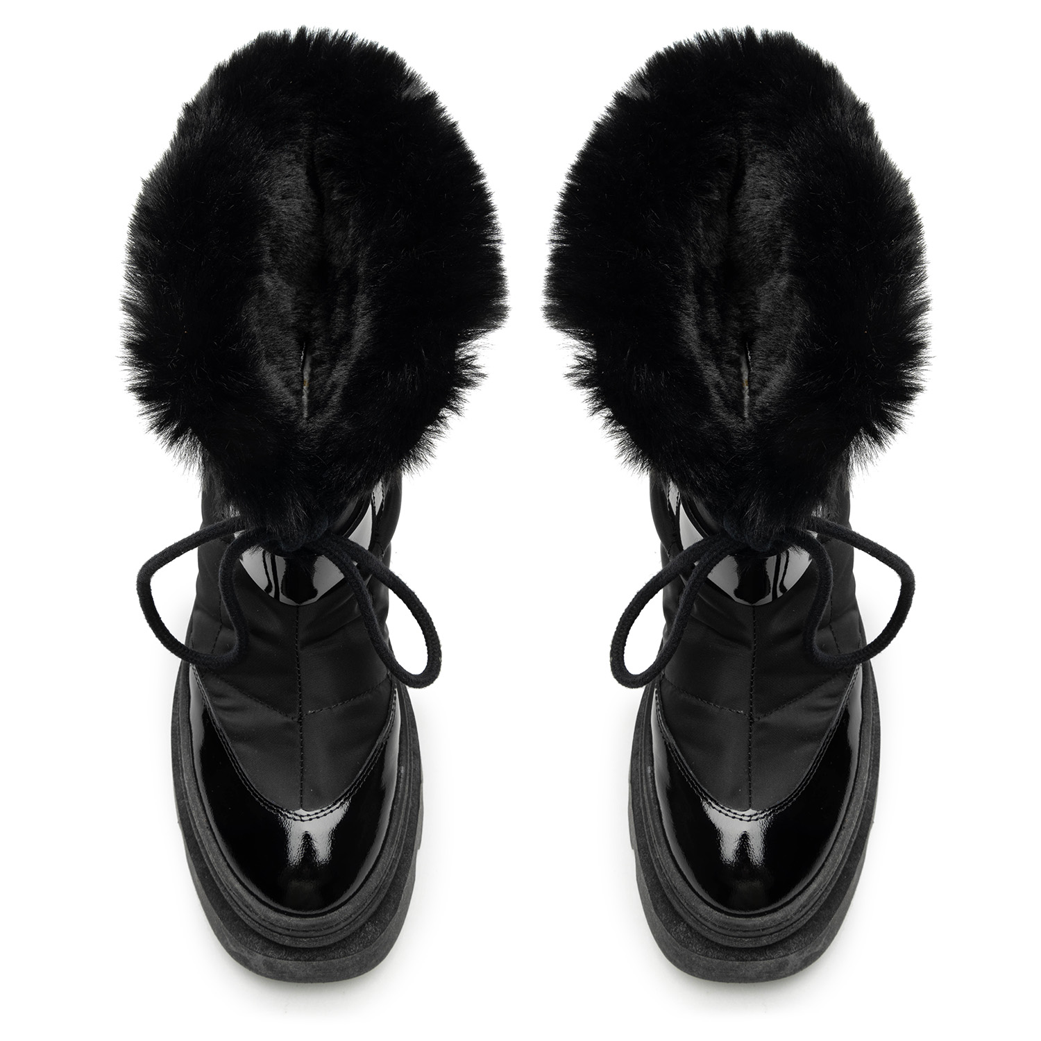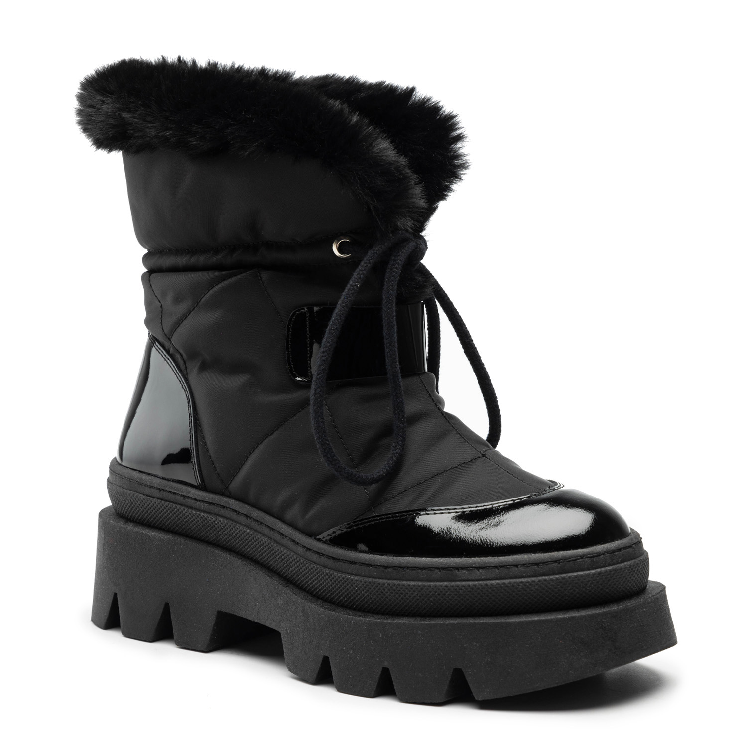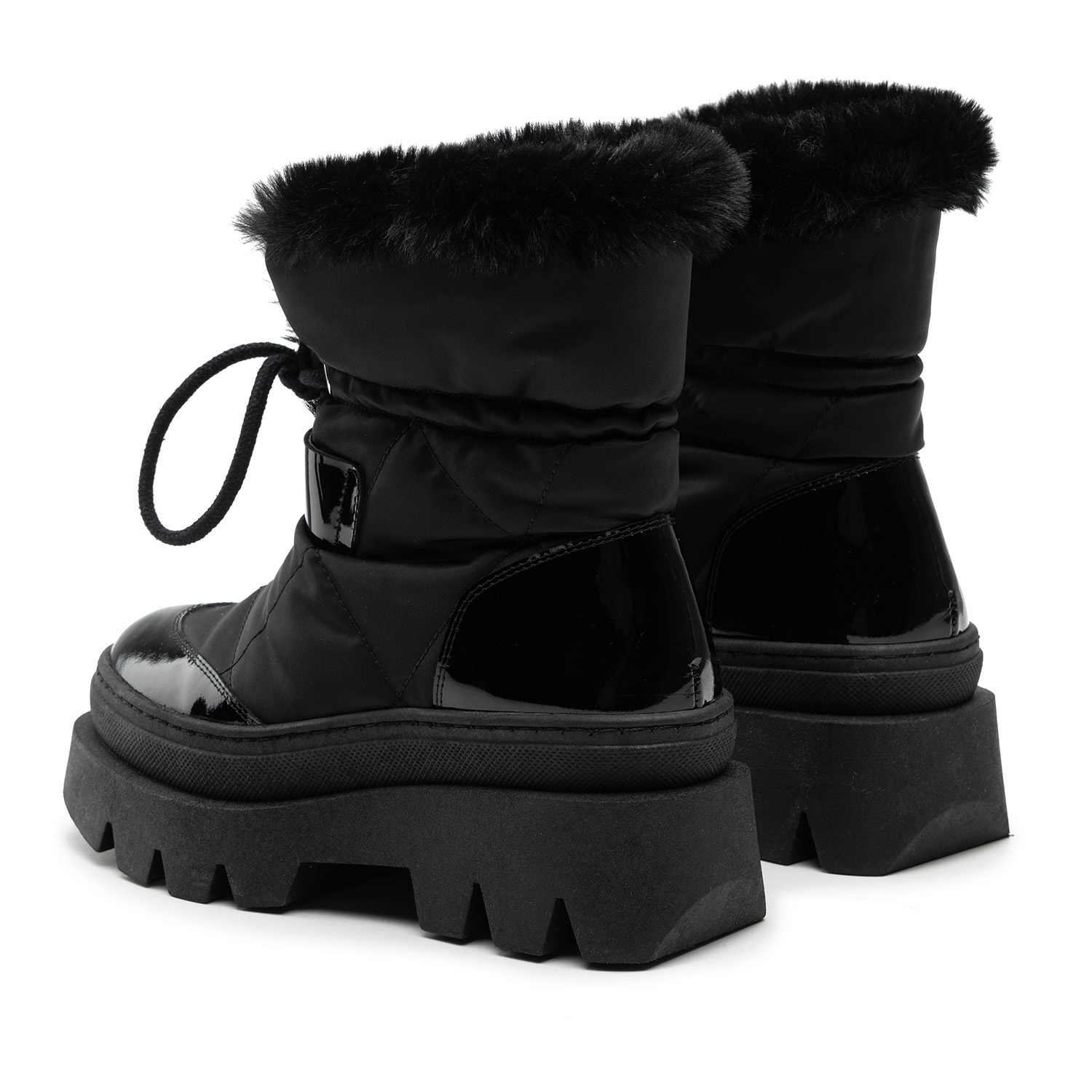 Czarny W1Damskie śniegowce to obuwie idealne na ujemne temperatury, mroźne dni, wycieczkę w góry lub zwykły spacer po mieście. Solidna, teksturowana podeszwa o całkowitej wysokości 3 cm nie tylko izoluje stopy od podłoża, ale również zwiększa przyczepność obuwia do podłoża. Model łączy w sobie naturalną skórę lakierowaną oraz wysokogatunkowe tworzywo cholewki, co wpływa na ułatwione ściąganie i zakładanie butów. W obuwiu zastosowano filcowe wykończenie wnętrza, które doskonale chroni przed zimnem i zapewnia ciepło nawet podczas mroźnych dni. Poręczny sznurek umieszczony w górnej części cholewki umożliwia idealne dopasowanie do ciała oraz zapobiega wpadaniu zimnego wiatru lub śniegu do środka. Śniegowce stanowią także istotny element zimowych stylizacji i świetnie prezentują się zarówno w casualowym wydaniu, zestawione z dżinsami, jak i luźnym stylu w połączeniu z dresem.