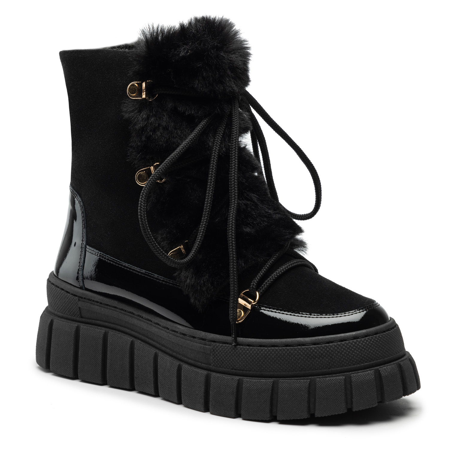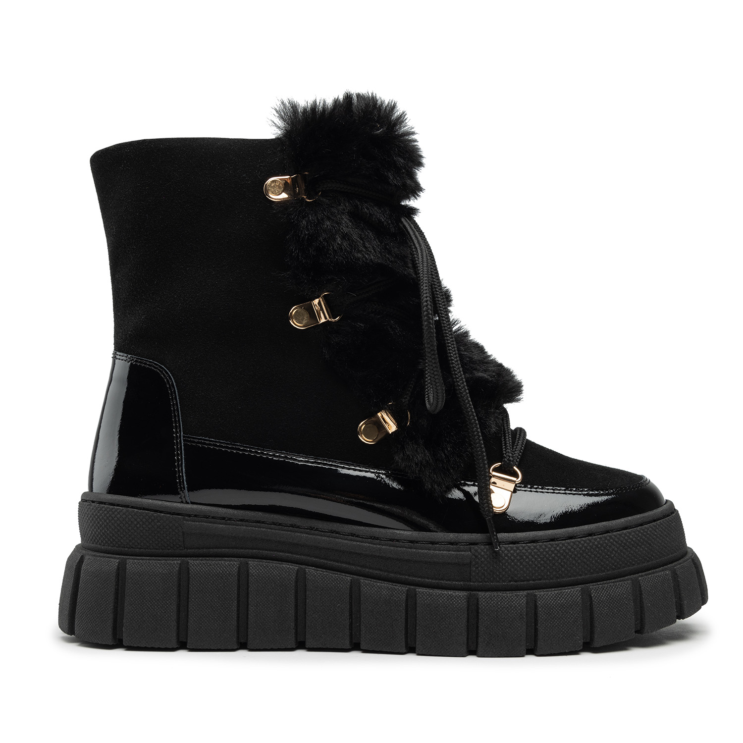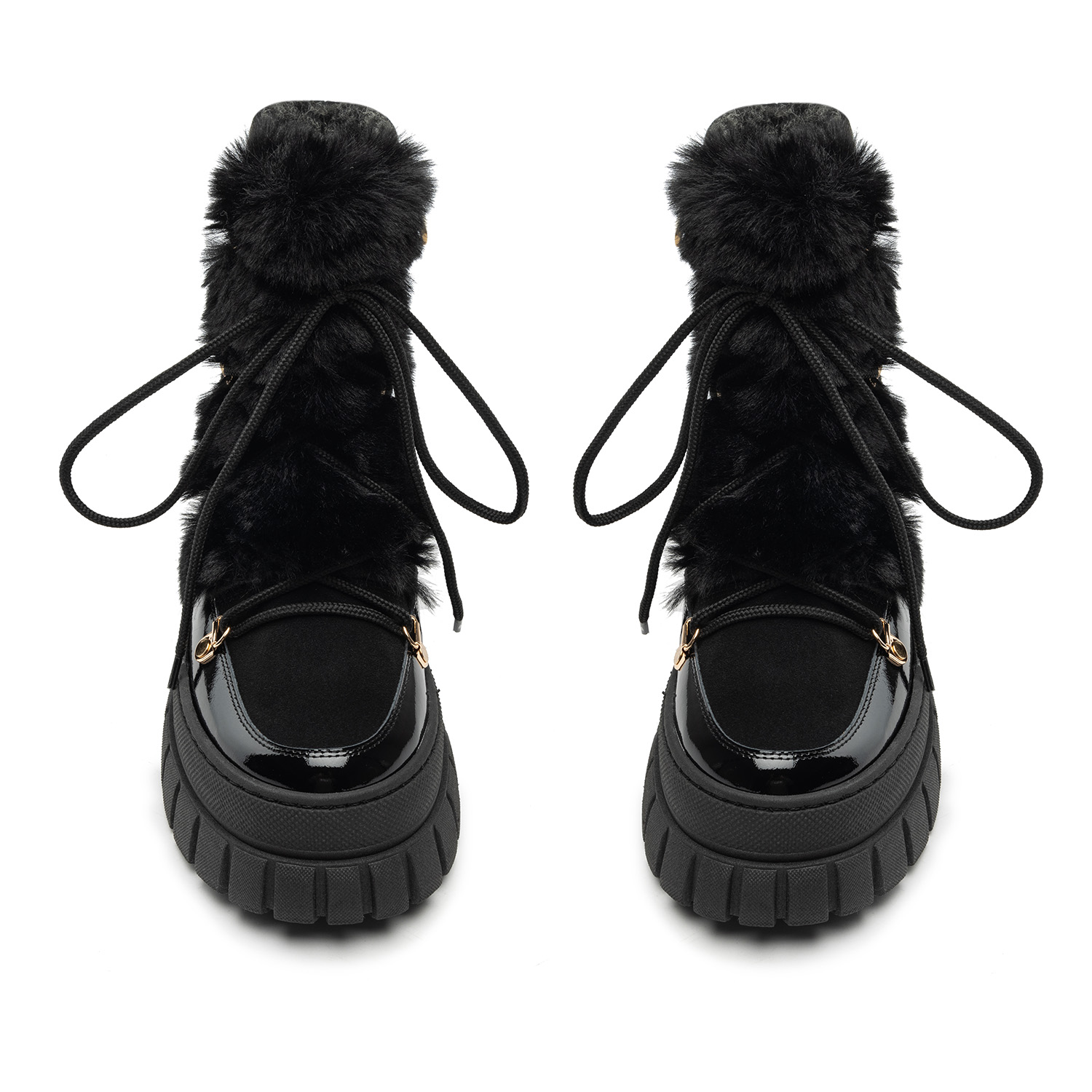 Śniegowce R.Polański 1728 - Czarny Zamsz/Czarny Lakier