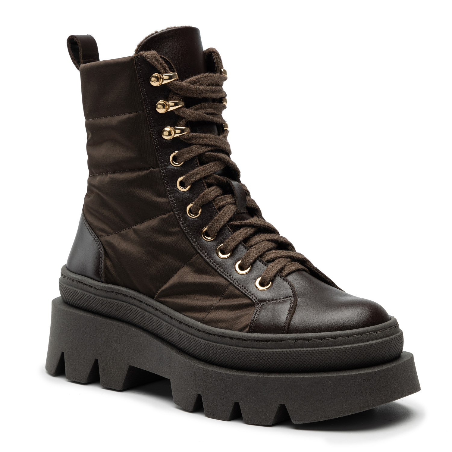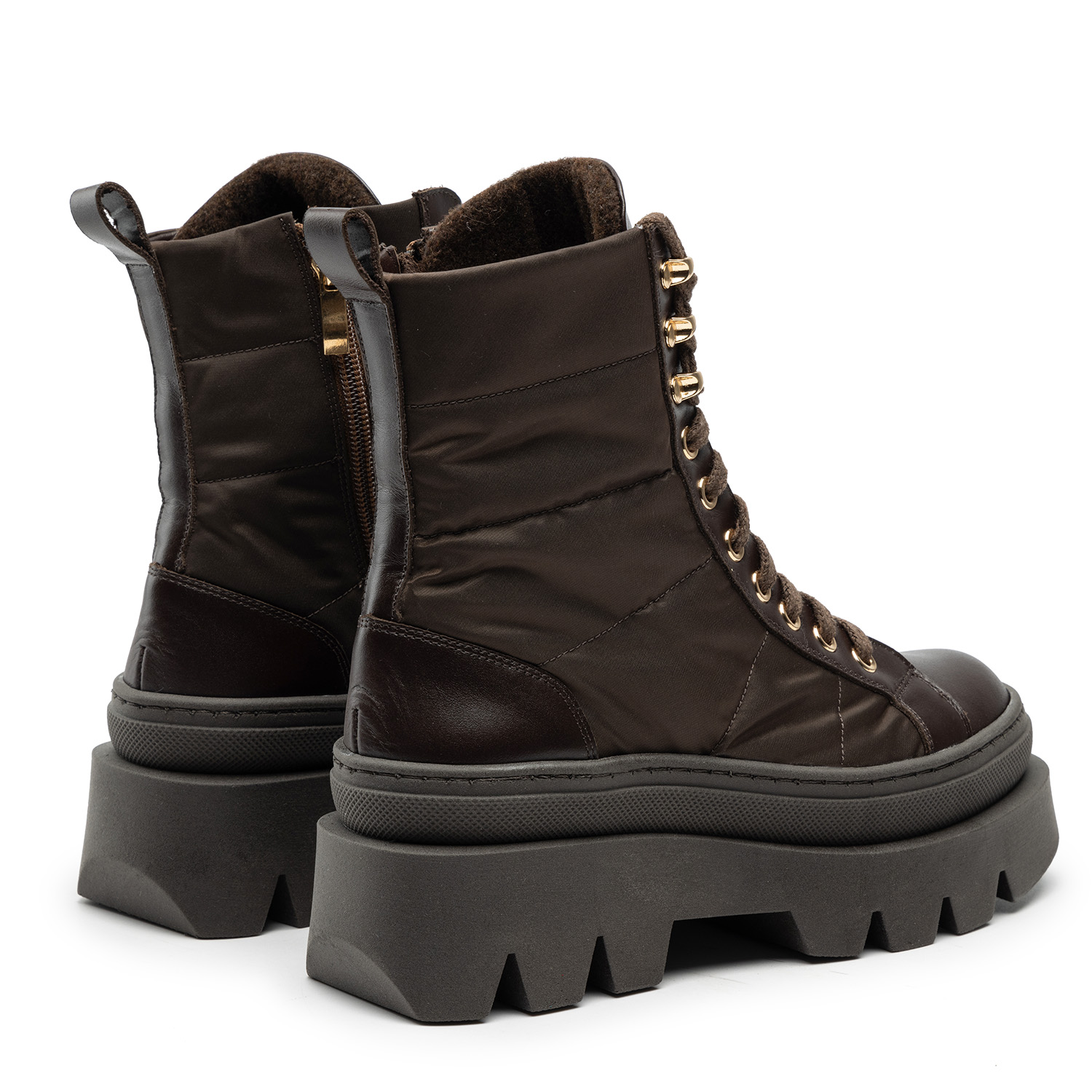 Brązowy W1Trapery to doskonałe rozwiązanie na zimny, jesienno-zimowy czas. Połączenie naturalnej, licowej skóry z wysokogatunkowym tworzywem świetnie chroni skórę przed mrozem, a solidna podeszwa z tłoczonym bieżnikiem zapewnia idealną przyczepność do podłoża, jednocześnie wpływając na wygodę i komfort użytkowania na najwyższym poziomie. Damskie trapery od środka wyłożone filcową warstwą ocieplającą dodatkowo zwiększają komfort i ciepło podczas chodzenia. Model wyposażono w poręczny suwak, dyskretnie umieszczony po wewnętrznych stronach cholewek, który umożliwia sprawne zakładanie obuwia. Długie sznurowadła umożliwiają szczelne dopasowanie do ciała oraz ozdabiają przednią część cholewki. Trapery doskonale nadają się do codziennych, wielogodzinnych wyjść z domu do pracy, weekendowych wycieczek oraz innych okazji.
